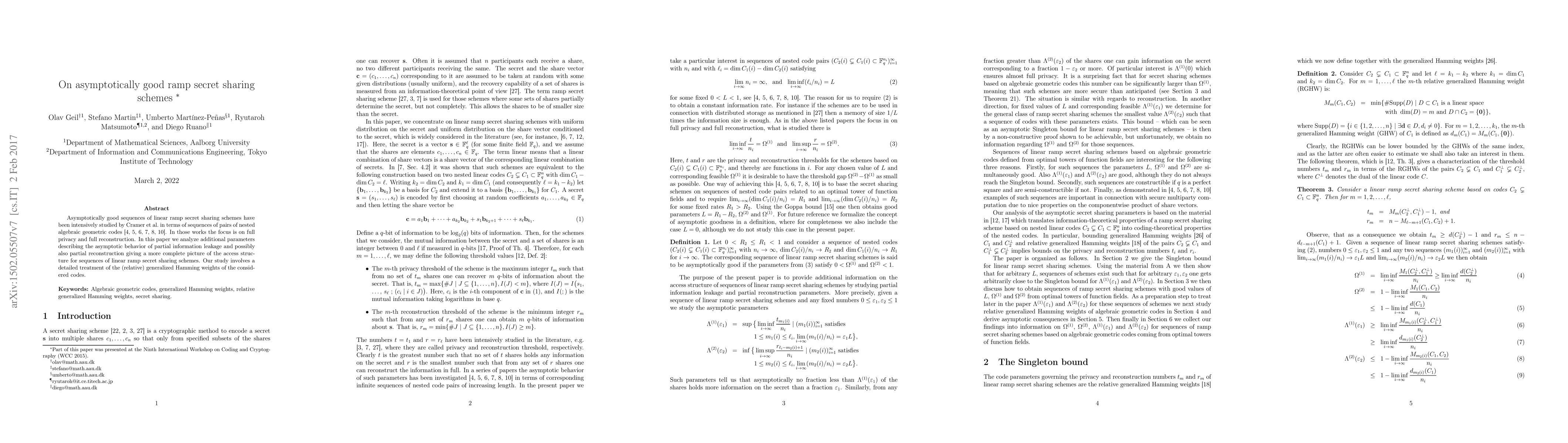 Asymptotically good sequences of linear ramp secret sharing schemes have been intensively studied by Cramer et al. in terms of sequences of pairs of nested algebraic geometric codes. In those works the focus is on full privacy and full reconstruction. In this paper we analyze additional parameters describing the asymptotic behavior of partial information leakage and possibly also partial reconstruction giving a more complete picture of the access structure for sequences of linear ramp secret sharing schemes. Our study involves a detailed treatment of the (relative) generalized Hamming weights of the considered codes.