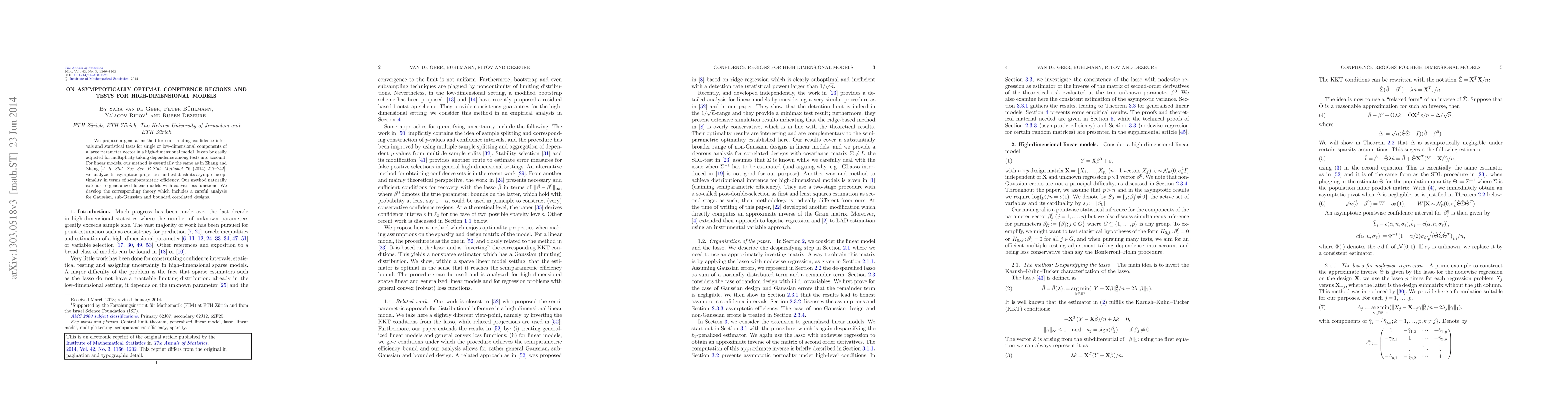 This paper proposes a method for constructing asymptotically optimal confidence intervals and tests for components in high-dimensional models, extending previous work for linear models and adapting it for generalized linear models with convex loss functions. The method is shown to be asymptotically optimal in terms of semiparametric efficiency.