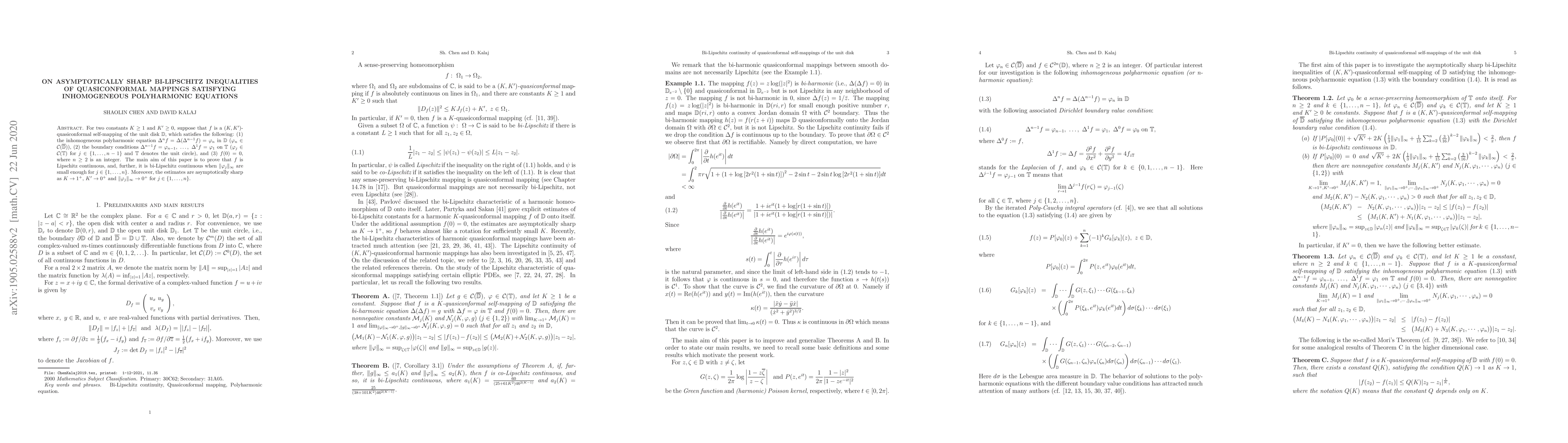 Suppose that $f$ is a $K$-quasiconformal ($(K,K')$-quasiconformal resp.) self-mapping of the unit disk $\mathbb{D}$, which satisfies the following: $(1)$ the inhomogeneous polyharmonic equation $\Delta^{n}f=\Delta(\Delta^{n-1} f)=\varphi_{n}$ $(\varphi_{n}\in \mathcal{C}(\overline{\mathbb{D}}))$, (2) the boundary conditions $\Delta^{n-1}f|_{\mathbb{T}}=\varphi_{n-1},~\ldots,~\Delta^{1}f|_{\mathbb{T}}=\varphi_{1}$ ($\varphi_{j}\in\mathcal{C}(\mathbb{T})$ for $j\in\{1,\ldots,n-1\}$ and $\mathbb{T}$ denotes the unit circle), and $(3)$ $f(0)=0$, where $n\geq2$ is an integer and $K\geq1$ ($K'\geq0$ resp.). The main aim of this paper is to prove that $f$ is Lipschitz continuous, and,further, it is bi-Lipschitz continuous when $\|\varphi_{j}\|_{\infty}$ are small enough for $j\in\{1,\ldots,n\}$. Moreover, the estimates are asymptotically sharp as $K\to 1$ ($K'\to0$ resp.) and $\|\varphi_{j}\|_{\infty}\to 0$ for $j\in\{1,\ldots,n\}$, and thus, such a mapping $f$ behaves almost like a rotation for sufficiently small $K$ ($K'$ resp.) and $\|\varphi_{j}\|_{\infty}$ for $j\in\{1,\ldots,n\}$.