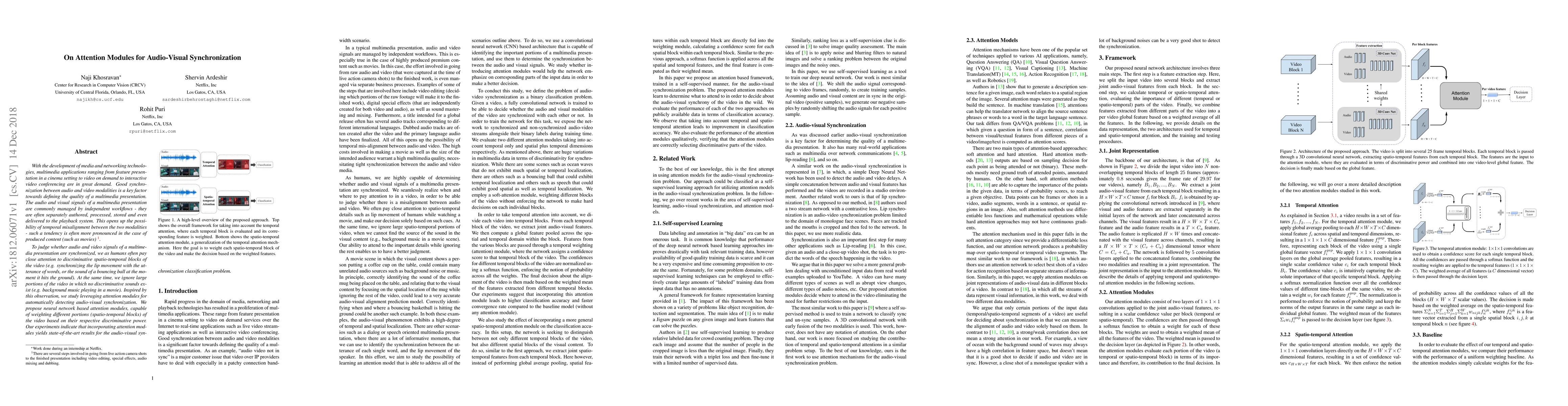 Researchers propose using neural network-based attention modules to improve audio-visual synchronization in multimedia presentations, achieving state-of-the-art results. Their approach leverages human-like attention mechanisms to prioritize discriminative spatio-temporal blocks in videos.