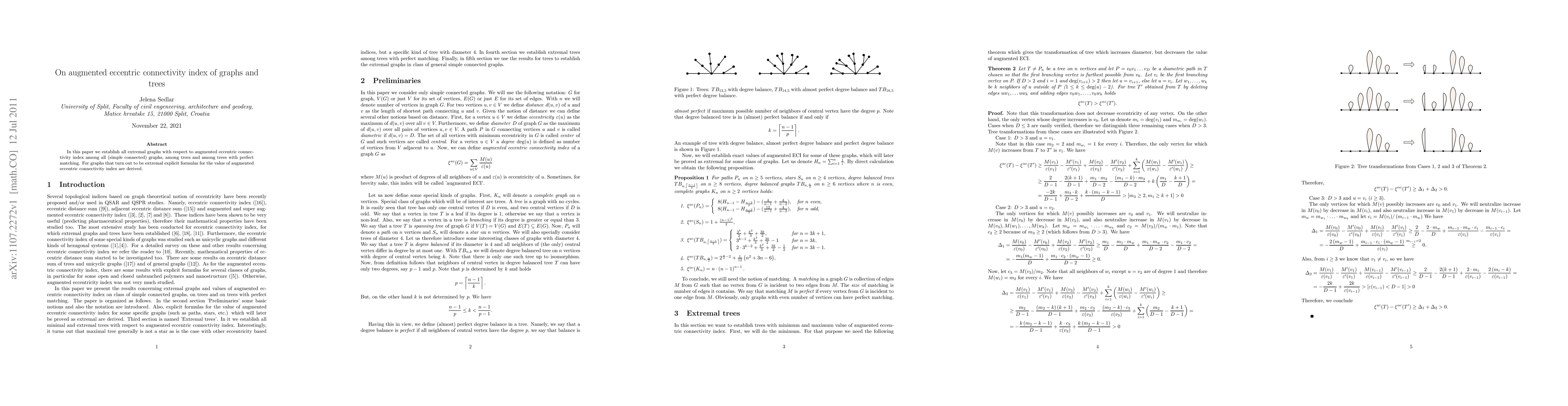 The paper establishes extremal graphs with respect to augmented eccentric connectivity index (ξac) among all simple connected graphs, trees, and trees with perfect matching. It derives explicit formulas for ξac values of extremal graphs.
