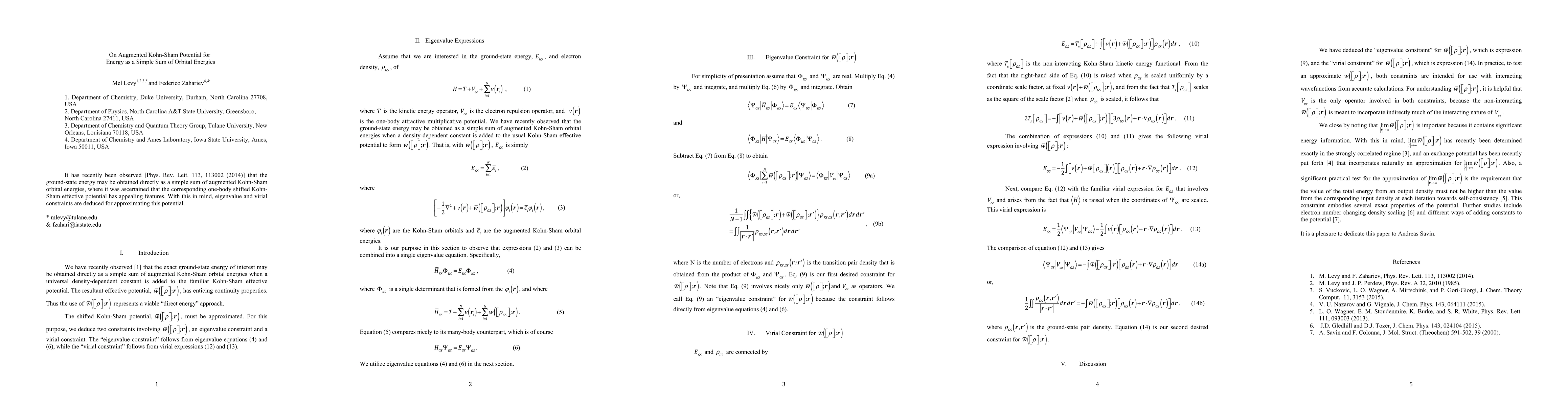 This paper explores the augmented Kohn-Sham potential, demonstrating that ground-state energy can be directly obtained as a sum of orbital energies. It deduces eigenvalue and virial constraints for approximating this potential, highlighting its appealing features.