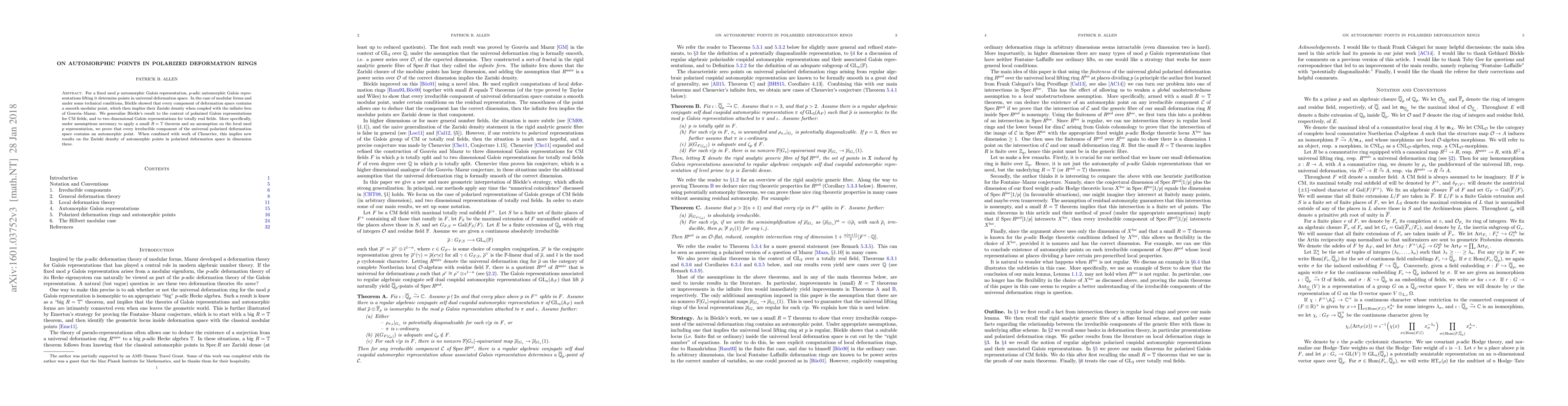 For a fixed mod $p$ automorphic Galois representation, $p$-adic automorphic Galois representations lifting it determine points in universal deformation space. In the case of modular forms and under some technical conditions, B\"{o}ckle showed that every component of deformation space contains a smooth modular point, which then implies their Zariski density when coupled with the infinite fern of Gouv\^{e}a-Mazur. We generalize B\"{o}ckle's result to the context of polarized Galois representations for CM fields, and to two dimensional Galois representations for totally real fields. More specifically, under assumptions necessary to apply a small $R = \mathbb{T}$ theorem and an assumption on the local mod $p$ representation, we prove that every irreducible component of the universal polarized deformation space contains an automorphic point. When combined with work of Chenevier, this implies new results on the Zariski density of automorphic points in polarized deformation space in dimension three.