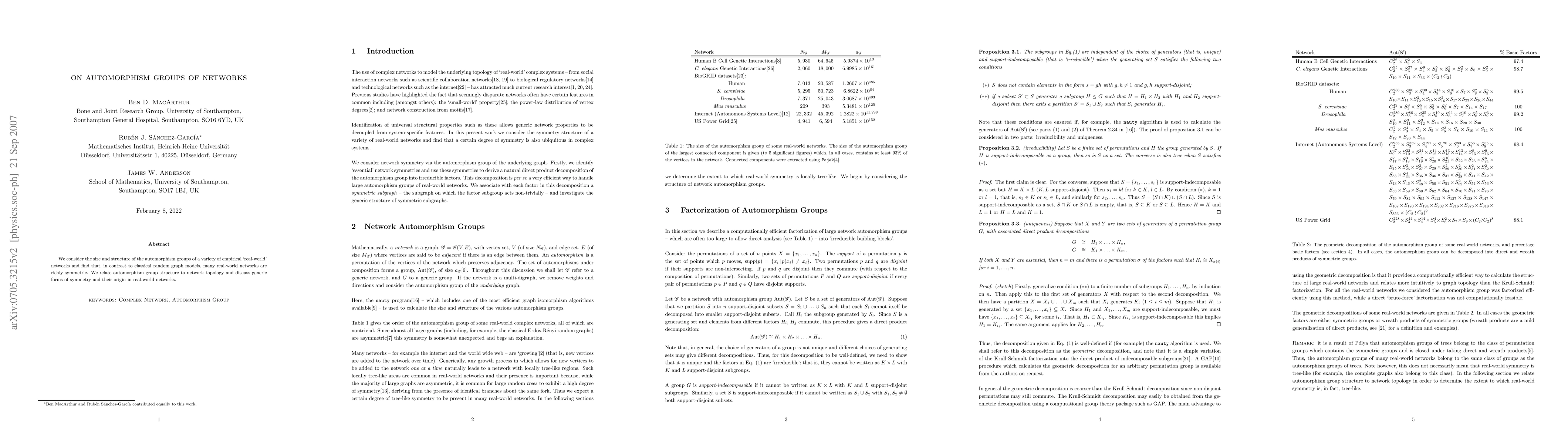 This paper investigates the automorphism groups of various real-world networks, revealing that many exhibit significant symmetry unlike classical random graphs. The study connects the structural properties of these groups to the underlying network topology and explores the origins of these symmetries.