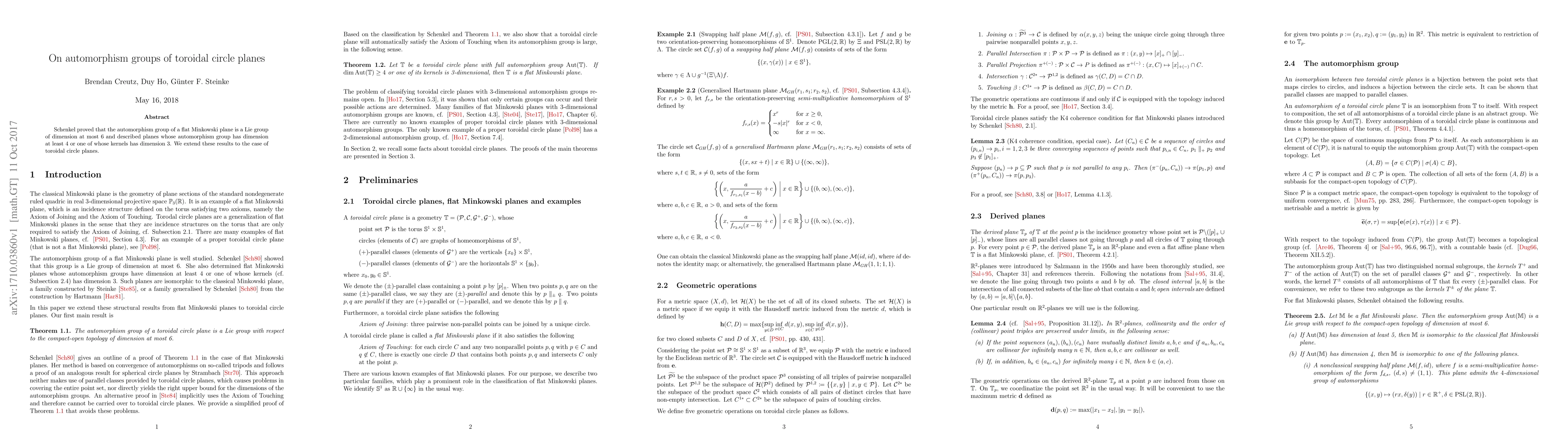 Schenkel proved that the automorphism group of a flat Minkowski plane is a Lie group of dimension at most 6 and described planes whose automorphism group has dimension at least 4 or one of whose kernels has dimension 3. We extend these results to the case of toroidal circle planes.