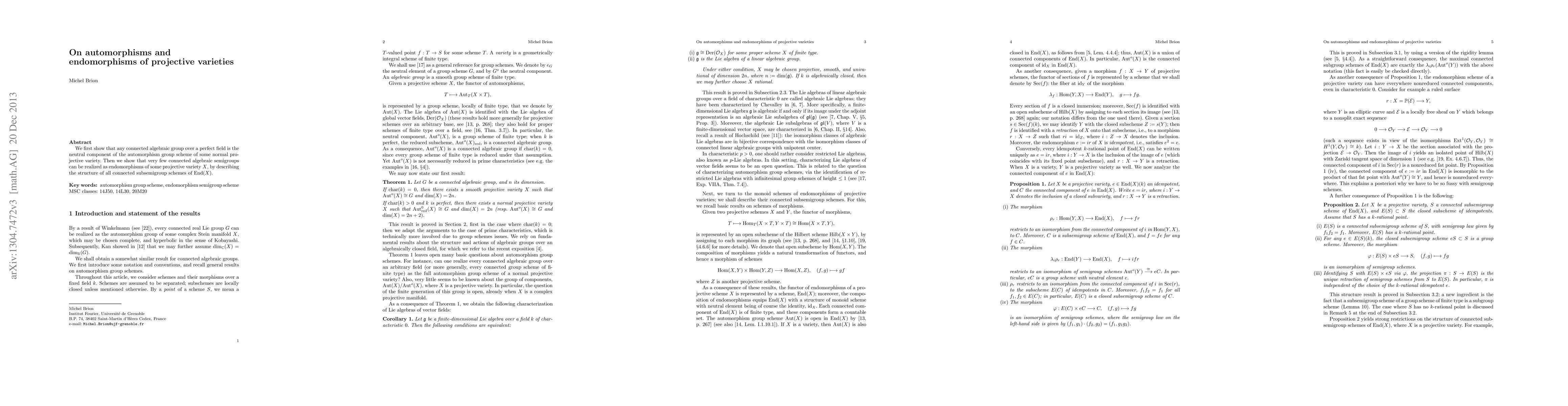 Researchers show that connected algebraic groups can act as automorphisms of normal projective varieties, and identify the structure of endomorphism schemes for projective varieties.