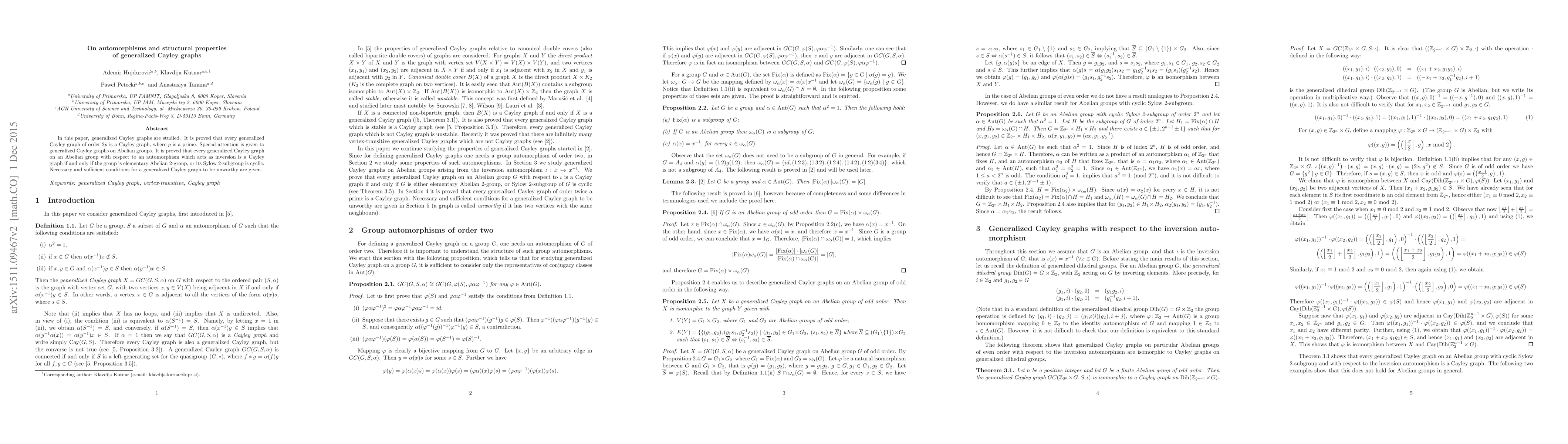 In this paper, generalized Cayley graphs are studied. It is proved that every generalized Cayley graph of order 2p is a Cayley graph, where p is a prime. Special attention is given to generalized Cayley graphs on Abelian groups. It is proved that every generalized Cayley graph on an Abelian group with respect to an automorphism which acts as inversion is a Cayley graph if and only if the group is elementary Abelian 2-group, or its Sylow 2-subgroup is cyclic. Necessary and sufficient conditions for a generalized Cayley graph to be unworthy are given.