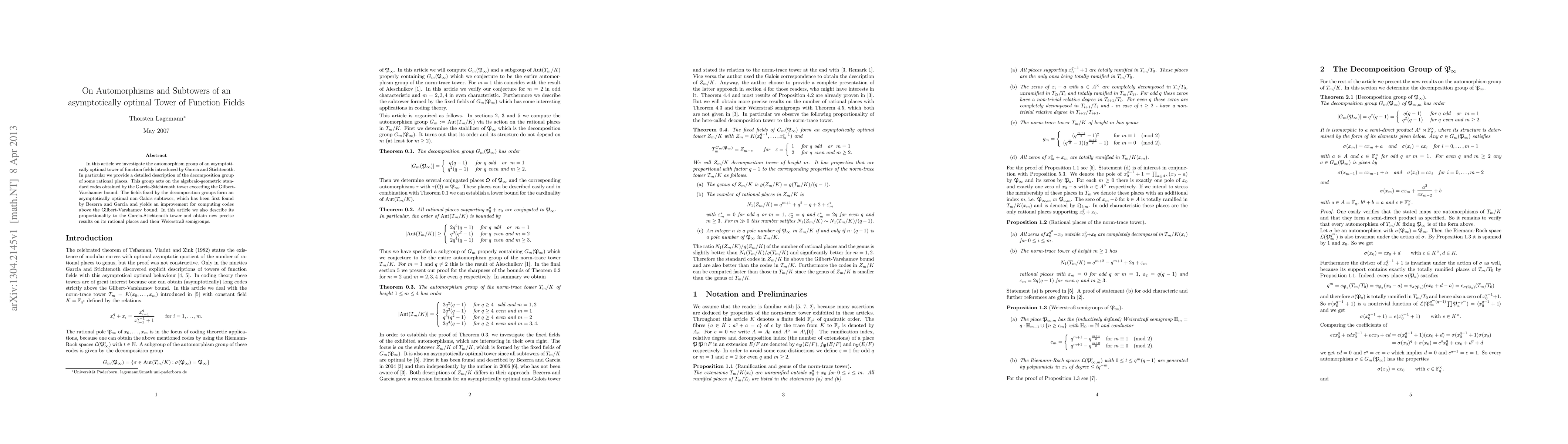 This paper explores the automorphism group of an asymptotically optimal tower of function fields, focusing on the decomposition group of rational places. It reveals a non-Galois subtower that improves code computation above the Gilbert-Varshamov bound and provides new insights into its rational places and Weierstrass semigroups.
