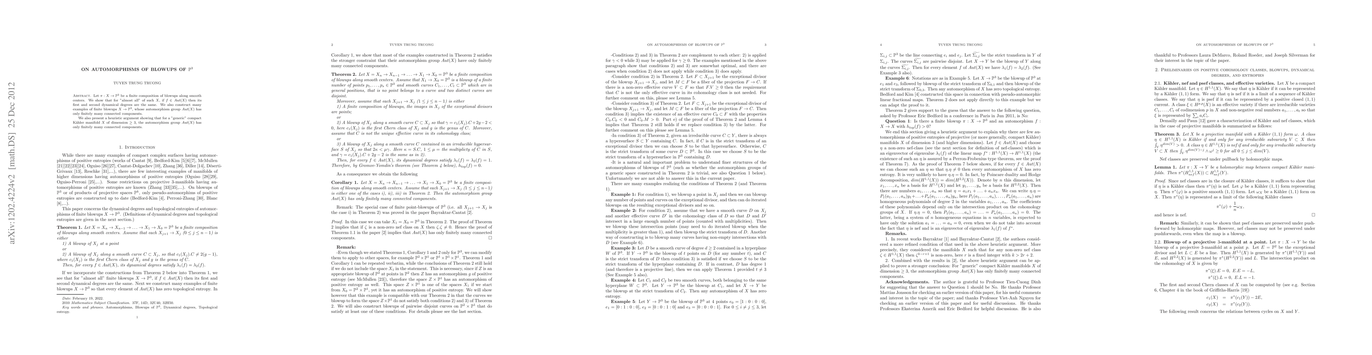 Let $\pi :X\rightarrow \mathbb{P}^3$ be a finite composition of blowups along smooth centers. We show that for "almost all" of such $X$, if $f\in Aut(X)$ then its first and second dynamical degrees are the same. We also construct many examples of finite blowups $X\rightarrow \mathbb{P}^3$, whose automorphism group $Aut(X)$ has only finitely many connected components. We also present a heuristic argument showing that for a "generic" compact K\"ahler manifold $X$ of dimension $\geq 3$, the automorphism group $Aut(X)$ has only finitely many connected components.