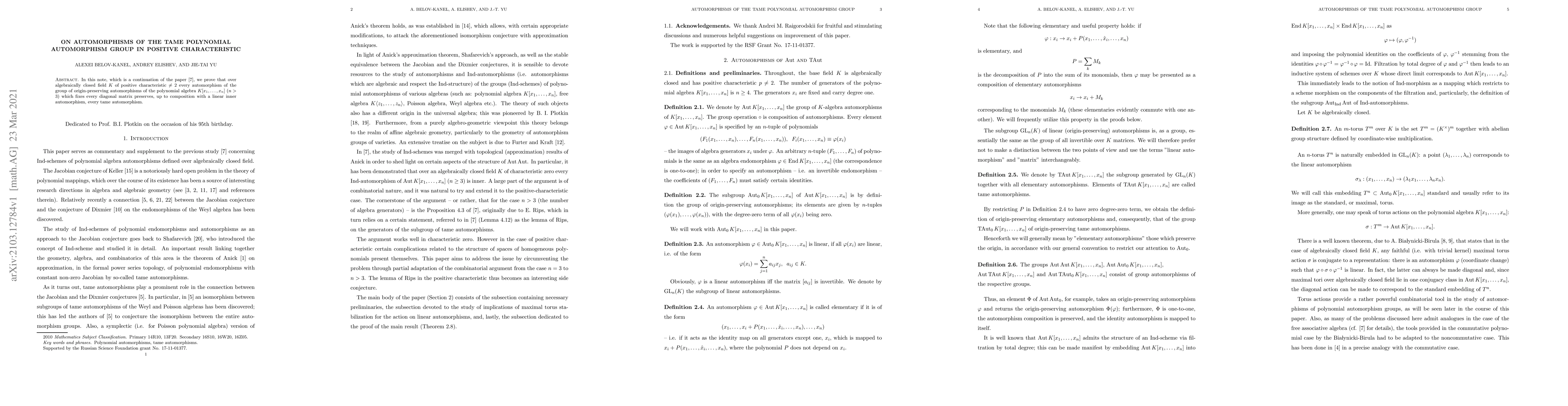 This paper proves that in positive characteristic fields, a specific type of automorphism preserves tame automorphisms up to linear composition, highlighting a connection between origin-preserving automorphisms and tame automorphisms.