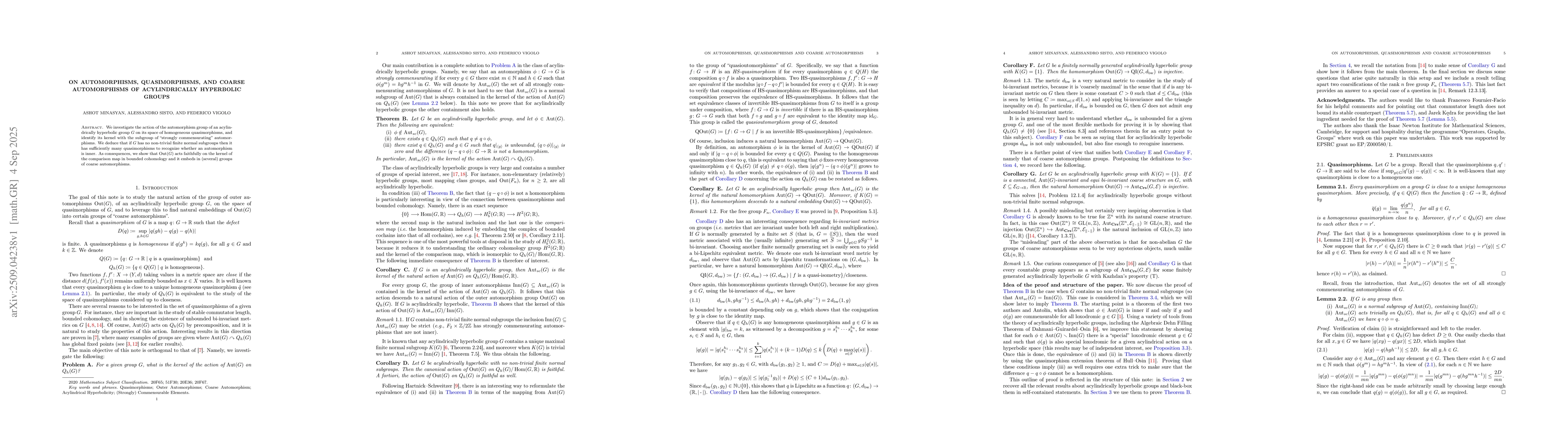We investigate the action of the automorphism group of an acylindrically hyperbolic group G on its space of homogeneous quasimorphisms, and identify its kernel with the subgroup of "strongly commensurating" automorphisms. We deduce that if G has no non-trivial finite normal subgroups then it has sufficiently many quasimorphisms to recognize whether an automorphism is inner. As consequences, we show that Out(G) acts faithfully on the kernel of the comparison map in bounded cohomology and it embeds in (several) groups of coarse automorphisms.