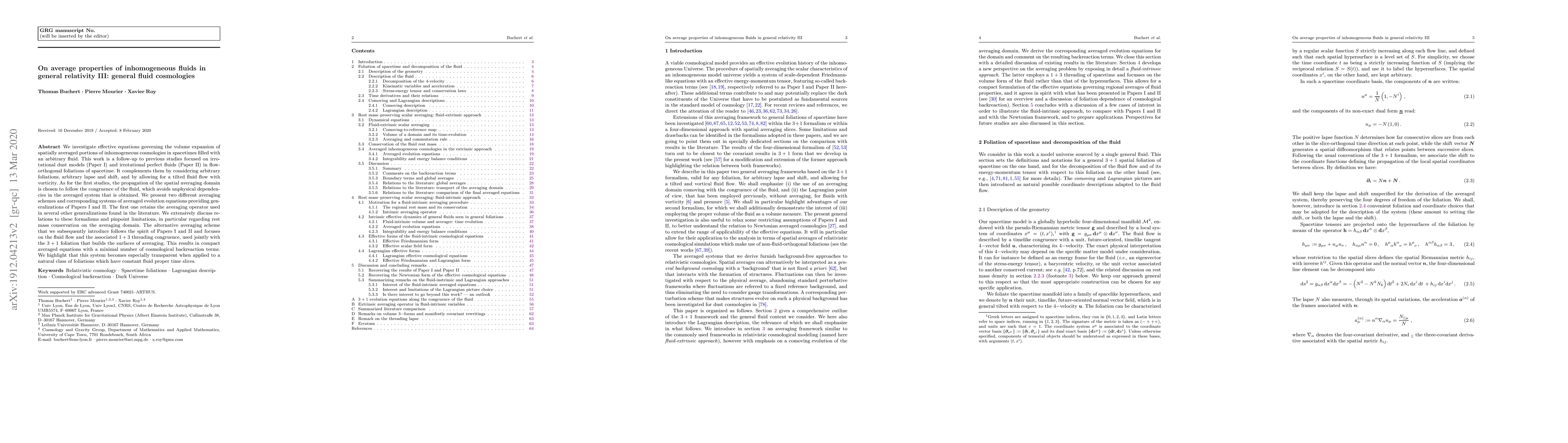 This paper extends previous studies on inhomogeneous fluid cosmologies in general relativity by considering arbitrary foliations, lapses, and shifts, and allowing for a fluid flow with vorticity. It introduces two averaging schemes to derive generalized evolution equations, highlighting their limitations and proposing a more transparent alternative that minimizes cosmological backreaction terms.