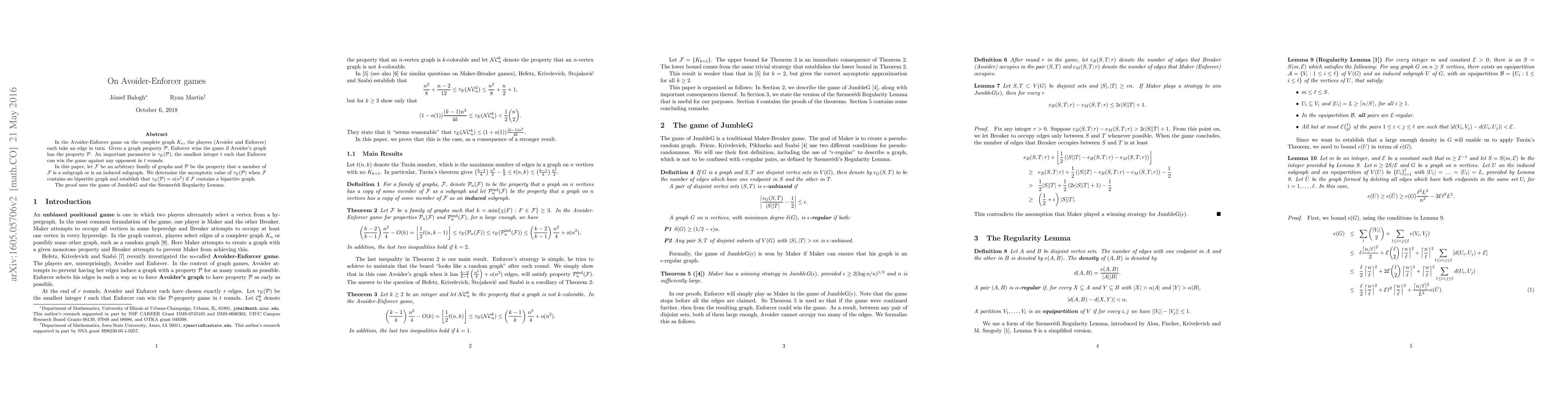 Researchers studied a game where players take turns on edges of a graph, finding that Enforcer can win in at most o(n^2) rounds if the graph contains no bipartite subgraphs. However, if it does contain one, they can win in just 1 round.