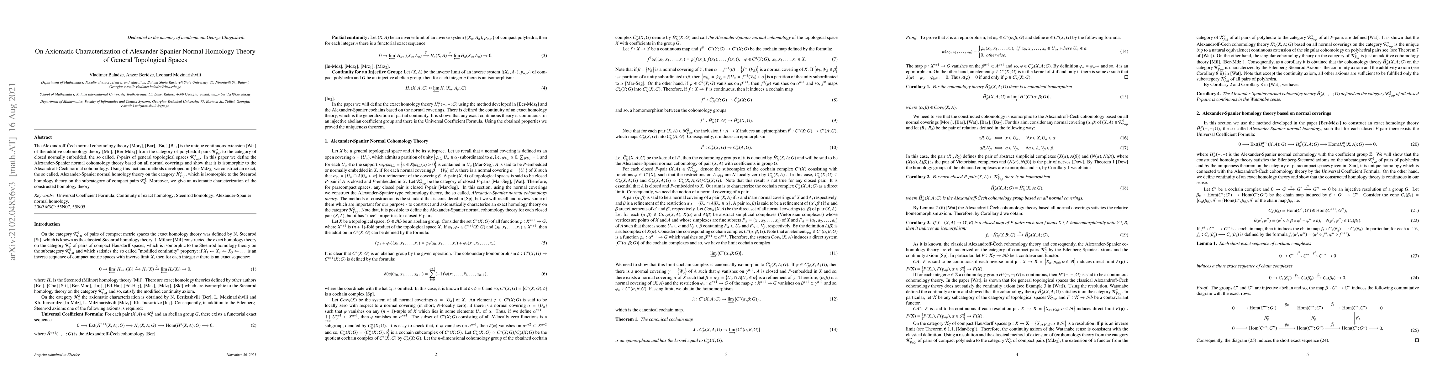 The Alexandroff-\v{C}ech normal cohomology theory [Mor$_1$], [Bar], [Ba$_1$],[Ba$_2$] is the unique continuous extension \cite{Wat} of the additive cohomology theory [Mil], [Ber-Mdz$_1$] from the category of polyhedral pairs $\mathcal{K}^2_{Pol}$ to the category of closed normally embedded, the so called, $P$-pairs of general topological spaces $\mathcal{K}^2_{Top}$. In this paper we define the Alexander-Spanier normal cohomology theory based on all normal coverings and show that it is isomorphic to the Alexandroff-\v{C}ech normal cohomology. Using this fact and methods developed in [Ber-Mdz$_3$] we construct an exact, the so called, Alexander-Spanier normal homology theory on the category $\mathcal{K}^2_{Top},$ which is isomorphic to the Steenrod homology theory on the subcategory of compact pairs $\mathcal{K}^2_{C}.$ Moreover, we give an axiomatic characterization of the constructed homology theory.