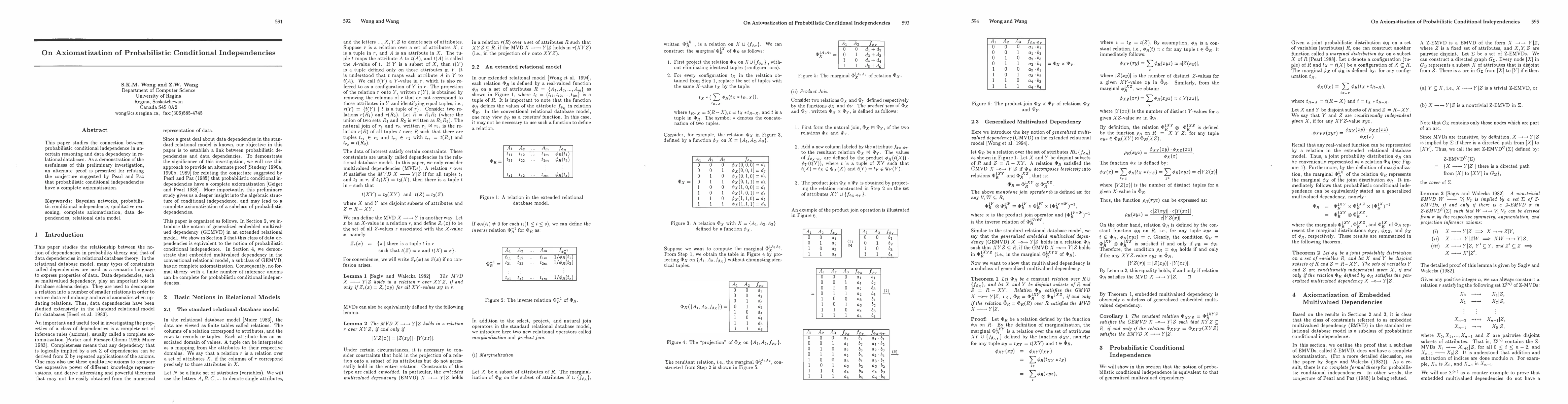 This paper investigates the link between probabilistic conditional independence in uncertain reasoning and data dependency in relational databases, providing an alternate proof to refute the conjecture by Pearl and Paz on the complete axiomatization of probabilistic conditional independencies.