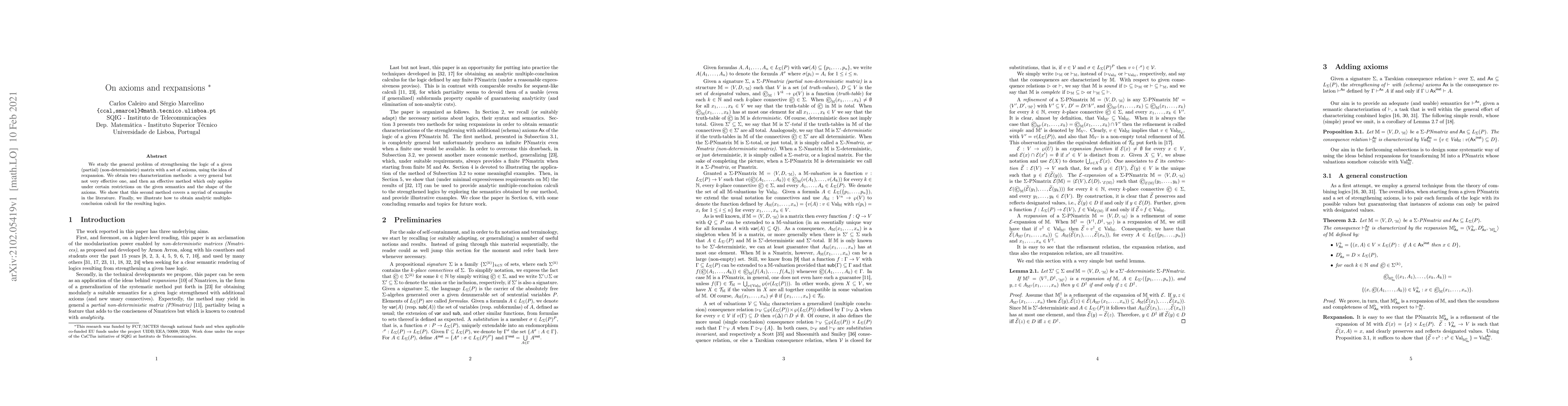 We study the general problem of strengthening the logic of a given (partial) (non-deterministic) matrix with a set of axioms, using the idea of rexpansion. We obtain two characterization methods: a very general but not very effective one, and then an effective method which only applies under certain restrictions on the given semantics and the shape of the axioms. We show that this second method covers a myriad of examples in the literature. Finally, we illustrate how to obtain analytic multiple-conclusion calculi for the resulting logics.