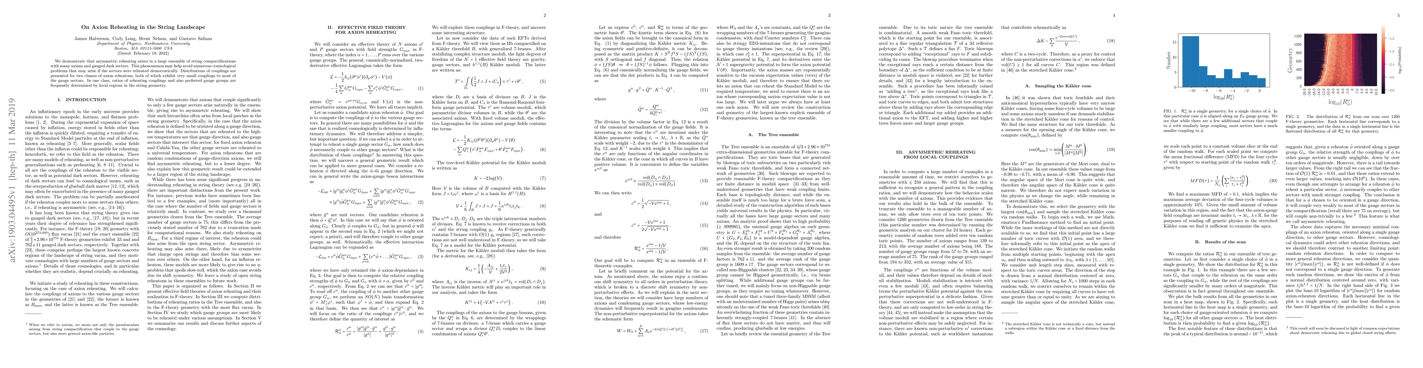 We demonstrate that asymmetric reheating arises in a large ensemble of string compactifications with many axions and gauged dark sectors. This phenomenon may help avoid numerous cosmological problems that may arise if the sectors were reheated democratically. Distributions of couplings are presented for two classes of axion reheatons, both of which exhibit very small couplings to most of the gauge sectors. In one class, ratios of reheating couplings and also preferred gauge groups are frequently determined by local regions in the string geometry.