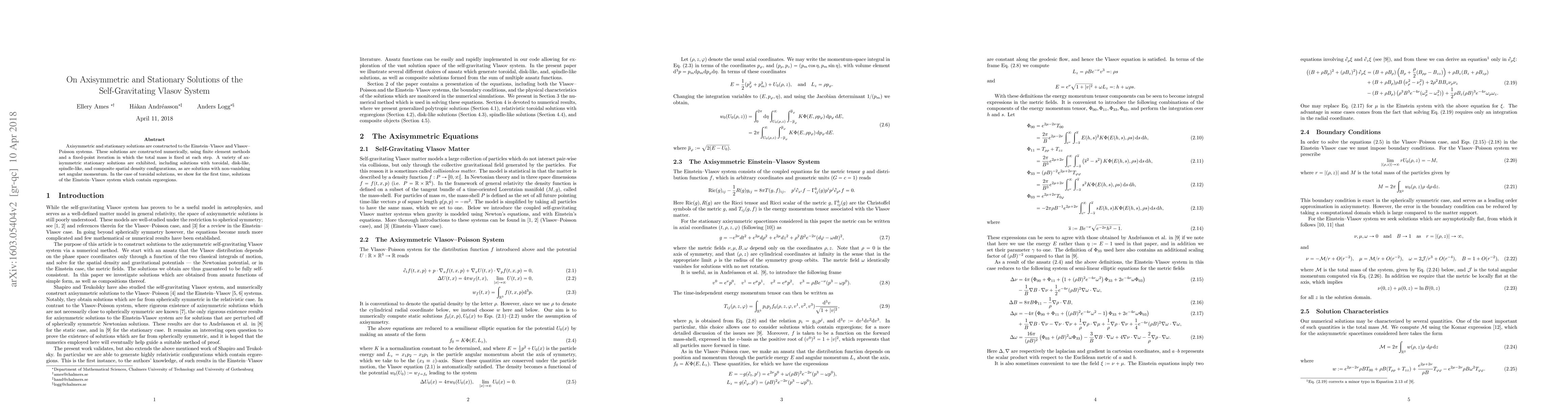 Axisymmetric and stationary solutions are constructed to the Einstein--Vlasov and Vlasov--Poisson systems. These solutions are constructed numerically, using finite element methods and a fixed-point iteration in which the total mass is fixed at each step. A variety of axisymmetric stationary solutions are exhibited, including solutions with toroidal, disk-like, spindle-like, and composite spatial density configurations, as are solutions with non-vanishing net angular momentum. In the case of toroidal solutions, we show for the first time, solutions of the Einstein--Vlasov system which contain ergoregions.
