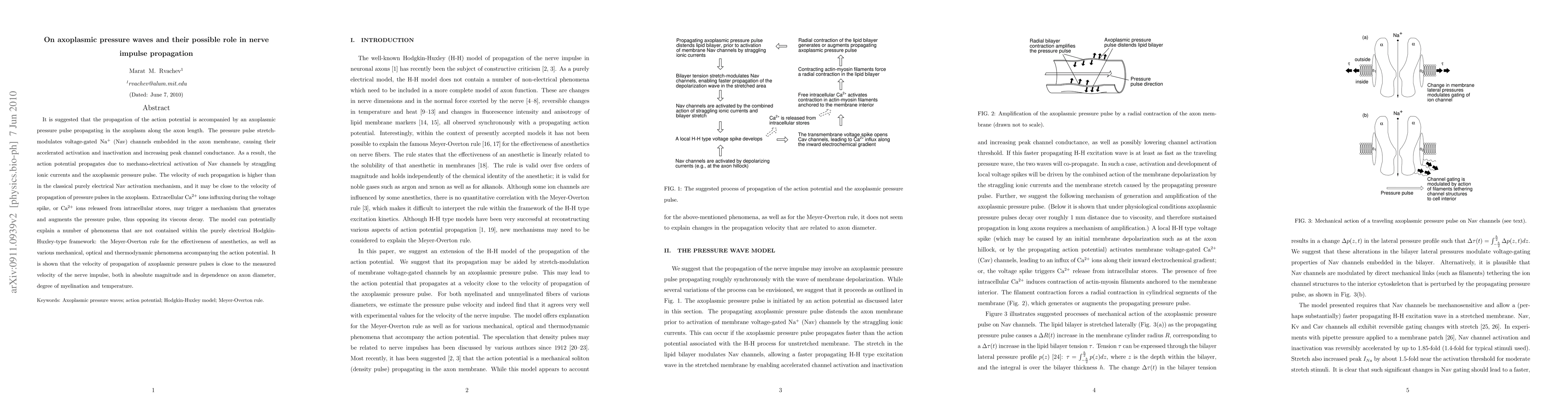 This paper proposes that nerve impulse propagation involves axoplasmic pressure waves that stretch-modulate voltage-gated Na channels, enhancing their activation and inactivation, thus increasing the velocity of impulse propagation. The model also explains various phenomena beyond the classical electrical framework, aligning closely with measured nerve impulse velocities.