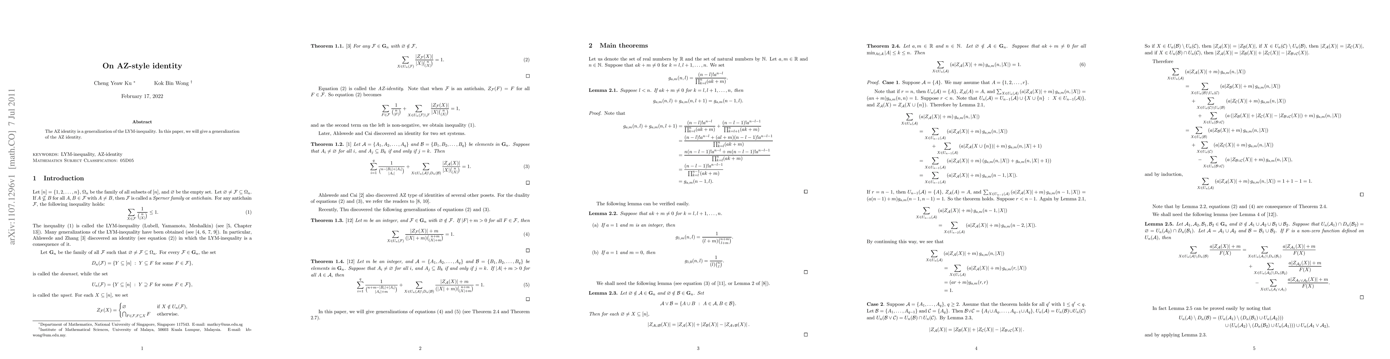 This paper extends the AZ identity, a generalization of the LYM inequality, and provides further insights into its mathematical properties and applications. The study aims to broaden the understanding of this theoretical framework.