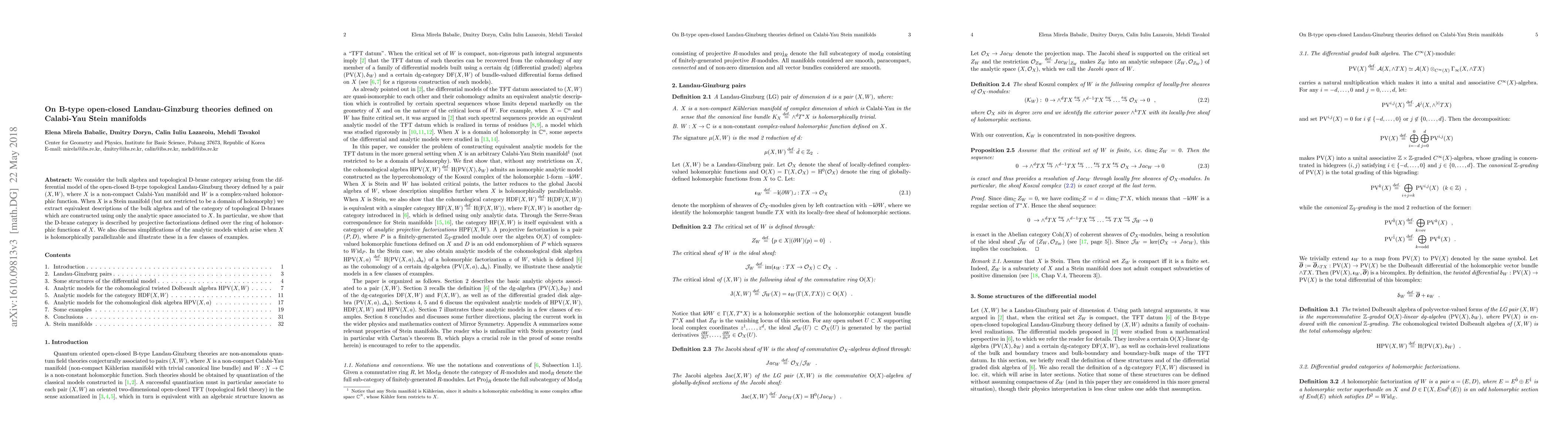We consider the bulk algebra and topological D-brane category arising from the differential model of the open-closed B-type topological Landau-Ginzburg theory defined by a pair $(X,W)$, where $X$ is a non-compact Calabi-Yau manifold and $W$ has compact critical set. When $X$ is a Stein manifold (but not restricted to be a domain of holomorphy), we extract equivalent descriptions of the bulk algebra and of the category of topological D-branes which are constructed using only the analytic space associated to $X$. In particular, we show that the D-brane category is described by projective matrix factorizations defined over the ring of holomorphic functions of $X$. We also discuss simplifications of the analytic models which arise when $X$ is holomorphically parallelizable and illustrate these analytic models in a few classes of examples.