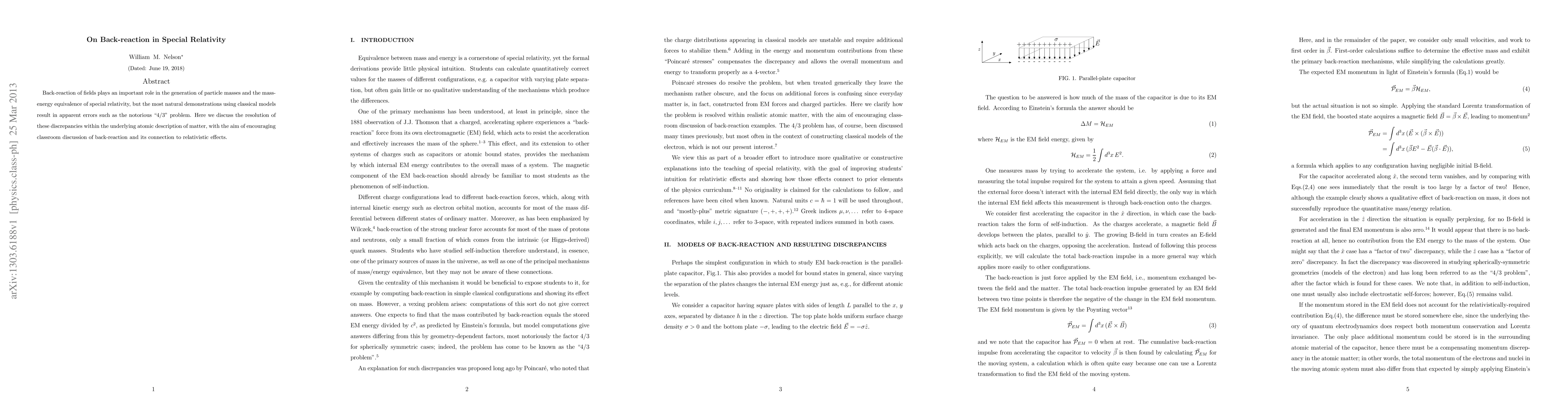 Back-reaction of fields plays an important role in the generation of particle masses and the mass-energy equivalence of special relativity, but the most natural demonstrations using classical models result in apparent errors such as the notorious "4/3" problem. Here we discuss the resolution of these discrepancies within the underlying atomic description of matter, with the aim of encouraging classroom discussion of back-reaction and its connection to relativistic effects.