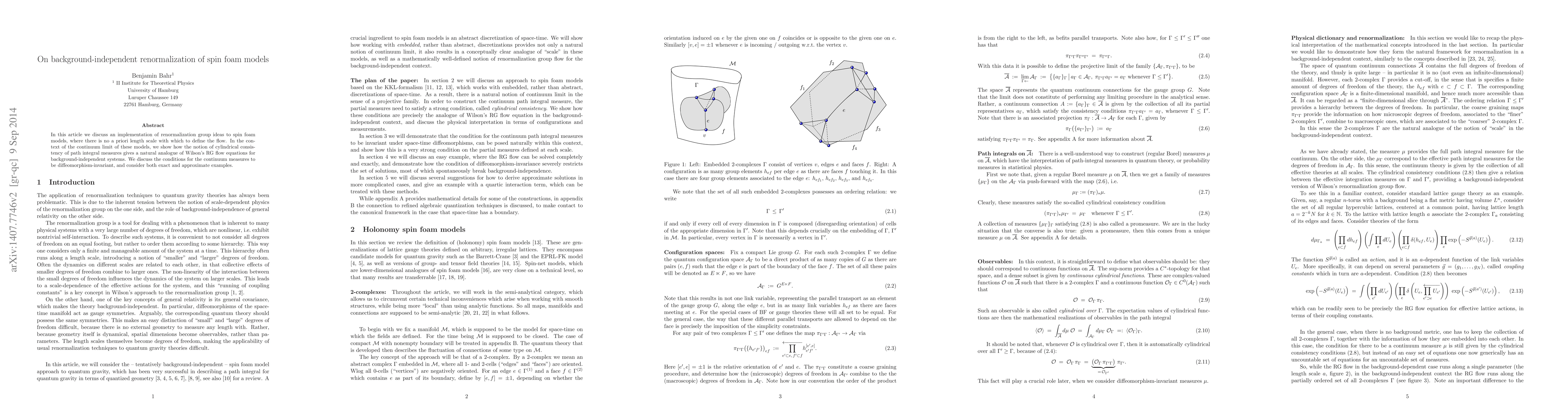 This paper explores the application of renormalization group techniques to spin foam models without a predefined length scale, demonstrating how cylindrical consistency of path integral measures provides a background-independent analogue of Wilson's RG flow equations. It examines conditions for diffeomorphism-invariant continuum measures in both exact and approximate scenarios.