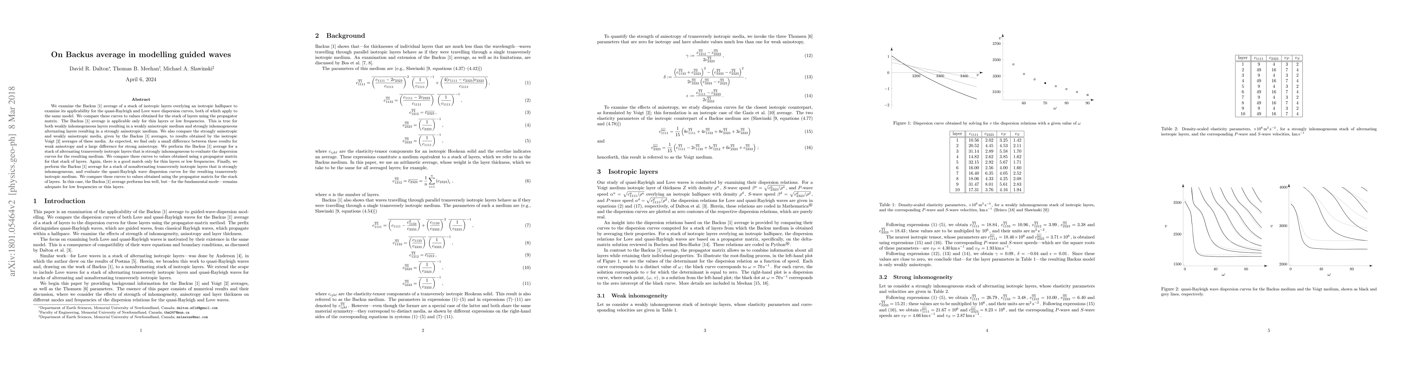 We examine the Backus average of a stack of isotropic layers overlying an isotropic halfspace to examine its applicability for the quasi-Rayleigh and Love wave dispersion curves, both of which apply to the same model. We compare these curves to values obtained for the stack of discrete layers using the propagator matrix. The Backus average is applicable only for thin layers or low frequencies. This is true for both weakly inhomogeneous layers resulting in a weakly anisotropic medium and strongly inhomogeneous alternating layers resulting in a strongly anisotropic medium. We also compare the strongly anisotropic and weakly anisotropic media, given by the Backus averages, to results obtained by the isotropic Voigt averages of these media. As expected, we find only a small difference between these results for weak anisotropy and a large difference for strong anisotropy. We perform the Backus average for a stack of alternating transversely isotropic layers that is strongly inhomogeneous to evaluate the dispersion curves for the resulting medium. We compare these curves to values obtained using a propagator matrix for that stack of discrete layers. Again, there is a good match only for thin layers or low frequencies. Finally, we perform the Backus average for a stack of nonalternating transversely isotropic layers that is strongly inhomogeneous, and evaluate the quasi-Rayleigh wave dispersion curves for the resulting transversely isotropic medium. We compare these curves to values obtained using the propagator matrix for the stack of discrete layers. In this case, the Backus average performs less well, but---for the fundamental mode---remains adequate for low frequencies or thin layers.