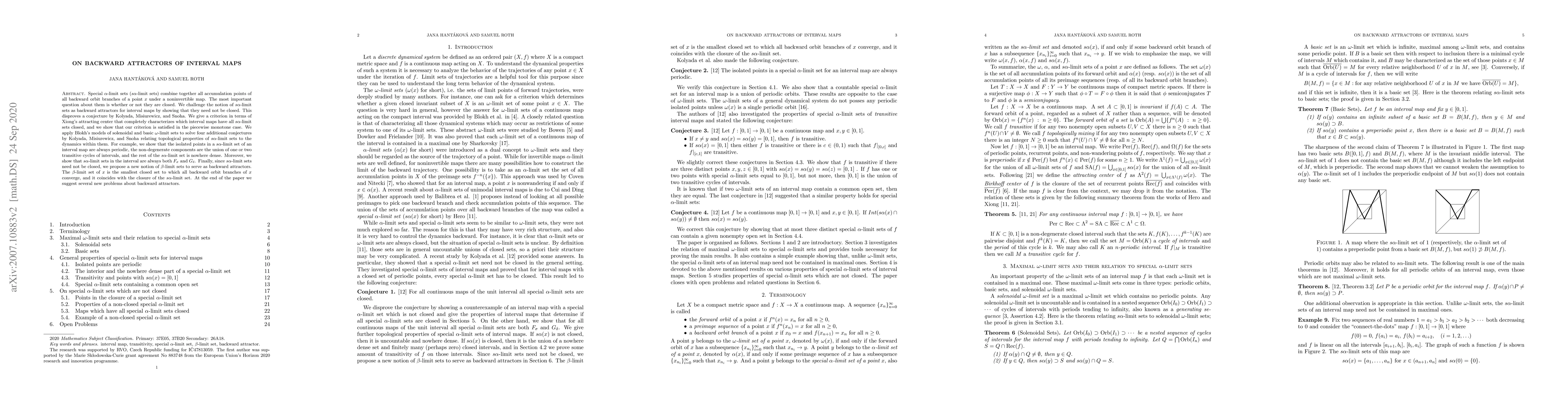 Special $\alpha$-limit sets ($s\alpha$-limit sets) combine together all accumulation points of all backward orbit branches of a point $x$ under a noninvertible map. The most important question about them is whether or not they are closed. We challenge the notion of $s\alpha$-limit sets as backward attractors for interval maps by showing that they need not be closed. This disproves a conjecture by Kolyada, Misiurewicz, and Snoha. We give a criterion in terms of Xiong's attracting center that completely characterizes which interval maps have all $s\alpha$-limit sets closed, and we show that our criterion is satisfied in the piecewise monotone case. We apply Blokh's models of solenoidal and basic $\omega$-limit sets to solve four additional conjectures by Kolyada, Misiurewicz, and Snoha relating topological properties of $s\alpha$-limit sets to the dynamics within them. For example, we show that the isolated points in a $s\alpha$-limit set of an interval map are always periodic, the non-degenerate components are the union of one or two transitive cycles of intervals, and the rest of the $s\alpha$-limit set is nowhere dense. Moreover, we show that $s\alpha$-limit sets in the interval are always both $F_\sigma$ and $G_\delta$. Finally, since $s\alpha$-limit sets need not be closed, we propose a new notion of $\beta$-limit sets to serve as backward attractors. The $\beta$-limit set of $x$ is the smallest closed set to which all backward orbit branches of $x$ converge, and it coincides with the closure of the $s\alpha$-limit set. At the end of the paper we suggest several new problems about backward attractors.