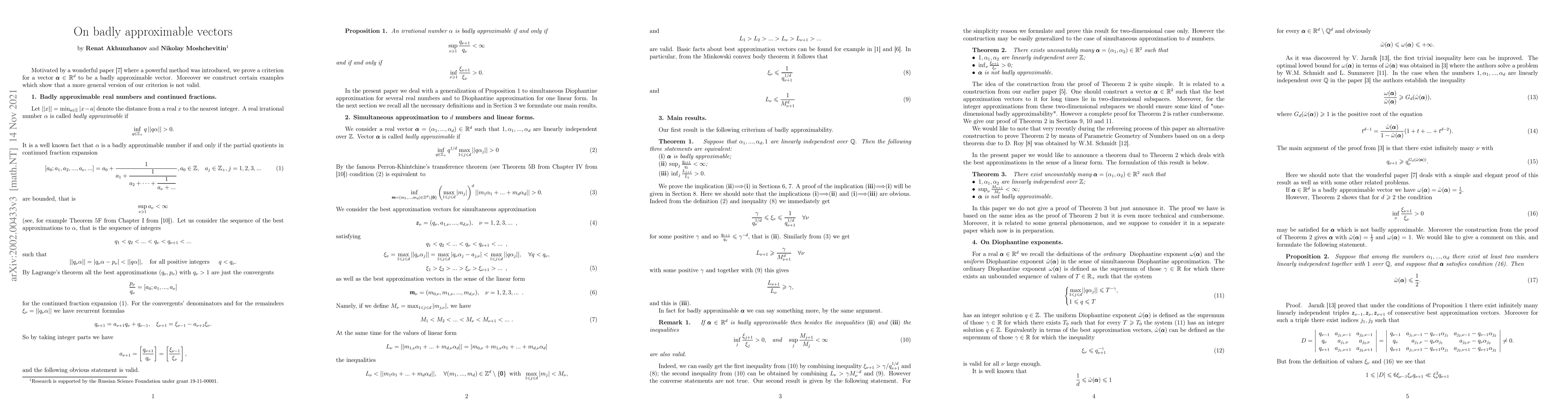 Researchers prove a criterion for a vector to be badly approximable, providing insight into vectors in R^d that cannot be closely approximated by rational numbers. The study also highlights the limitations of a more general version of this criterion.