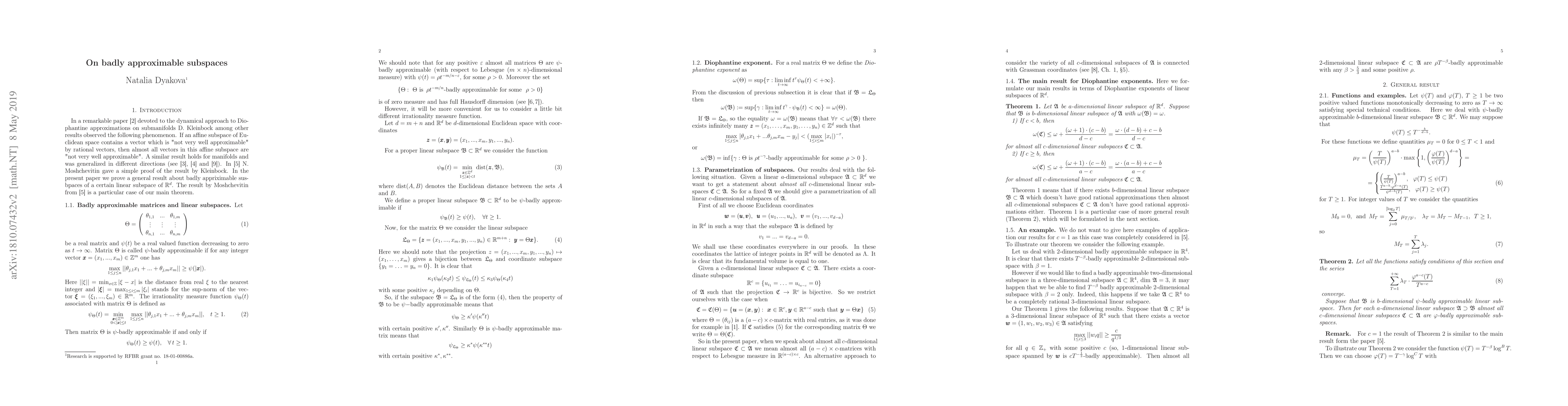 The study finds that almost all c-dimensional subspaces in an a-dimensional subspace contain badly approximable b-dimensional subspaces for certain values of a and b.