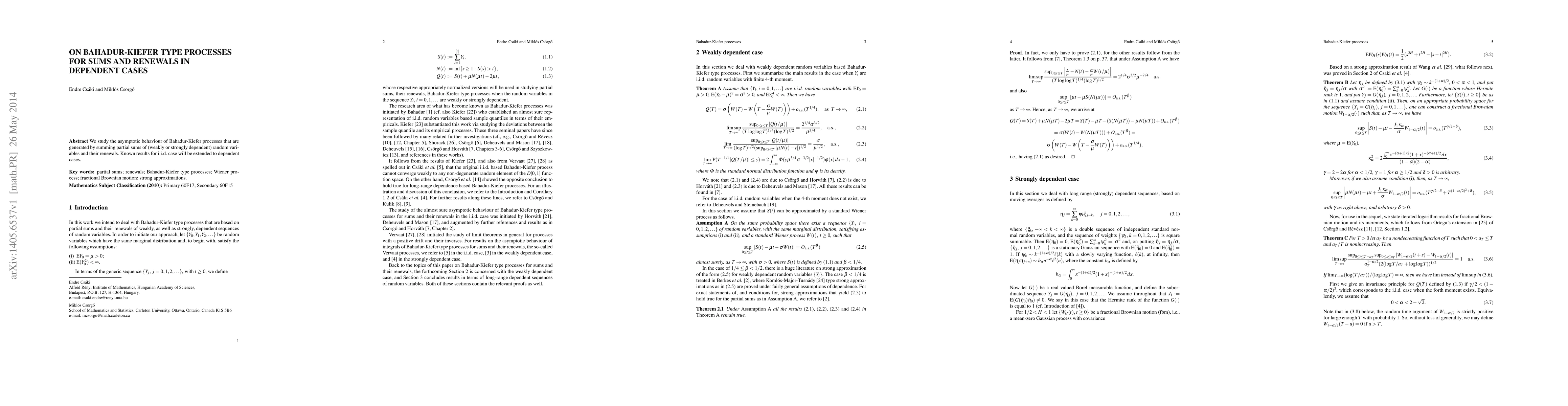 We study the asymptotic behaviour of Bahadur-Kiefer processes that are generated by summing partial sums of (weakly or strongly dependent) random variables and their renewals. Known results for i.i.d. case will be extended to dependent cases.