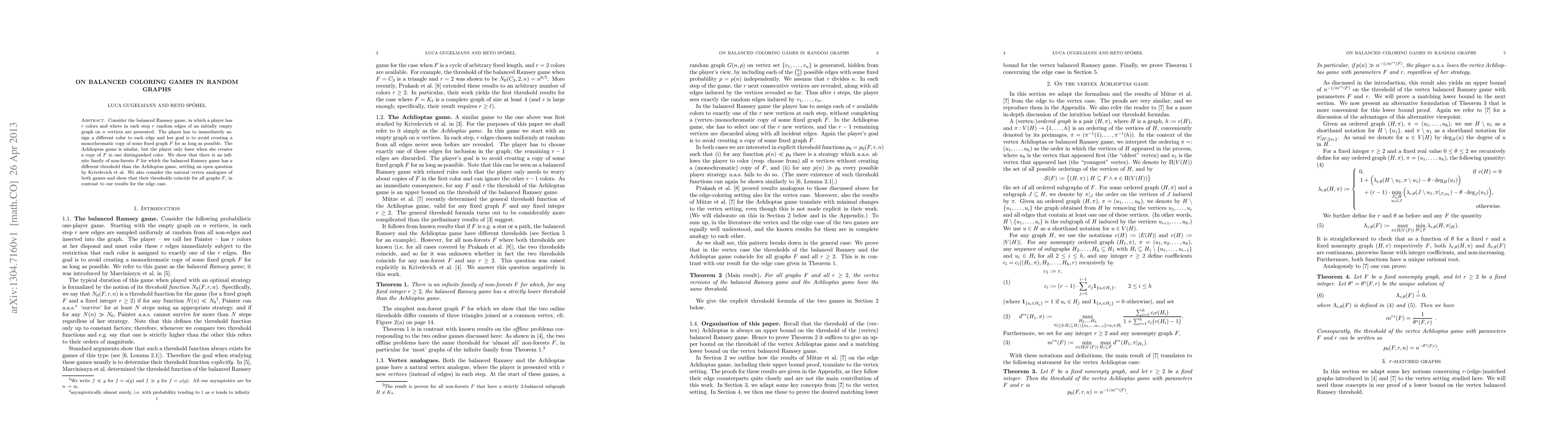 Consider the balanced Ramsey game, in which a player has r colors and where in each step r random edges of an initially empty graph on n vertices are presented. The player has to immediately assign a different color to each edge and her goal is to avoid creating a monochromatic copy of some fixed graph F for as long as possible. The Achlioptas game is similar, but the player only loses when she creates a copy of F in one distinguished color. We show that there is an infinite family of non-forests F for which the balanced Ramsey game has a different threshold than the Achlioptas game, settling an open question by Krivelevich et al. We also consider the natural vertex analogues of both games and show that their thresholds coincide for all graphs F, in contrast to our results for the edge case.
