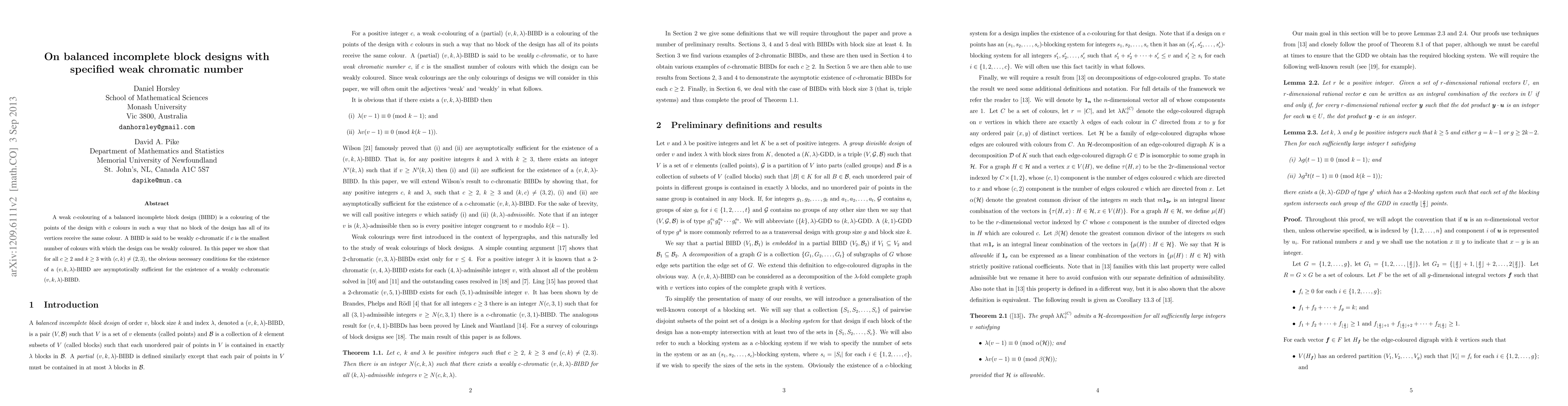 This paper demonstrates that for balanced incomplete block designs (BIBDs) with specified parameters, the necessary conditions for the existence of a weakly $c$-chromatic BIBD are asymptotically sufficient for all $c \geq 2$ and $k \geq 3$, except when $(c,k) = (2,3)$. It explores the concept of weak $c$-colouring where no block is monochromatic.