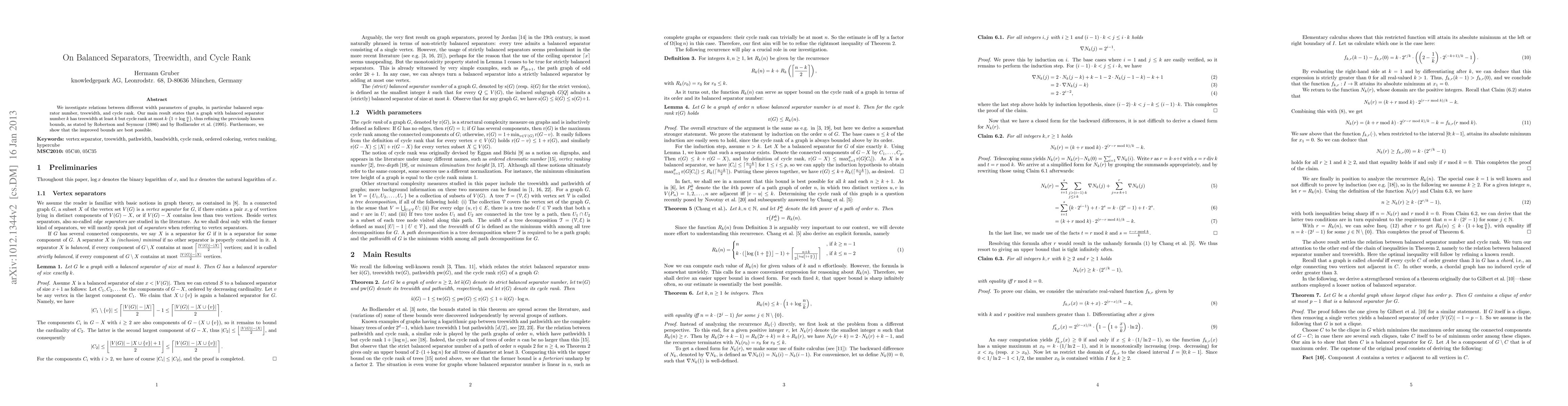 We investigate relations between different width parameters of graphs, in particular balanced separator number, treewidth, and cycle rank. Our main result states that a graph with balanced separator number k has treewidth at least k but cycle rank at most k(1 + log (n/k)), thus refining the previously known bounds, as stated by Robertson and Seymour (1986) and by Bodlaender et al. (1995). Furthermore, we show that the improved bounds are best possible.