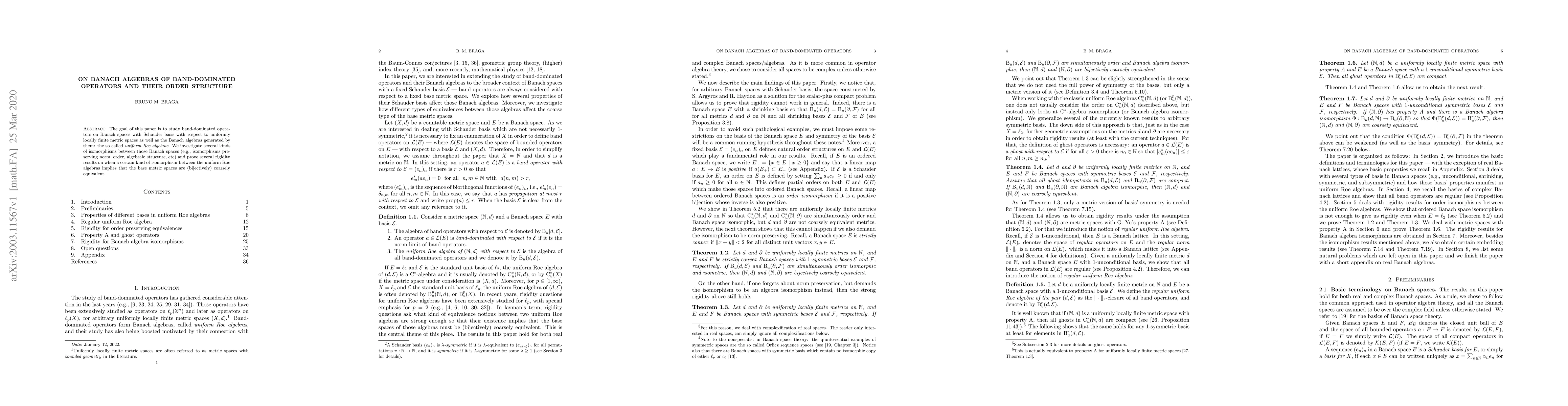 The goal of this paper is to study band-dominated operators on Banach spaces with Schauder basis with respect to uniformly locally finite metric spaces as well as the Banach algebras generated by them: the so called uniform Roe algebras. We investigate several kinds of isomorphisms between those Banach spaces (e.g., isomorphisms preserving norm, order, algebraic structure, etc) and prove several rigidity results on when a certain kind of isomorphism between the uniform Roe algebras implies that the base metric spaces are (bijectively) coarsely equivalent.