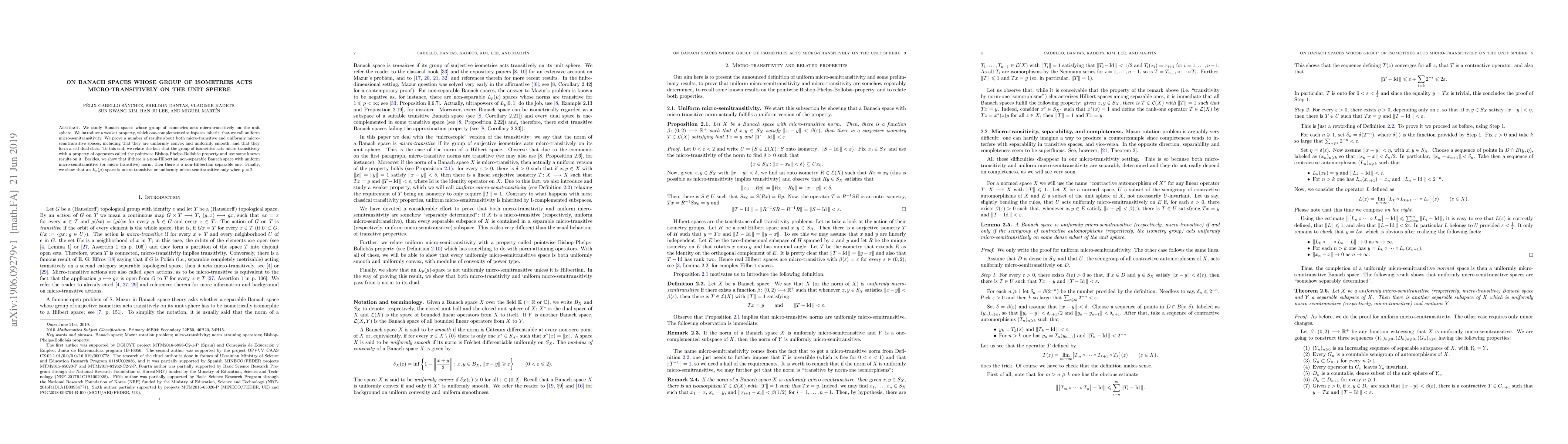 This paper investigates Banach spaces where the group of isometries exhibits micro-transitive behavior on the unit sphere, introducing a related property called uniform micro-semitransitivity. It demonstrates that such spaces are uniformly convex and smooth, forming a self-dual class, and establishes connections with operator properties.