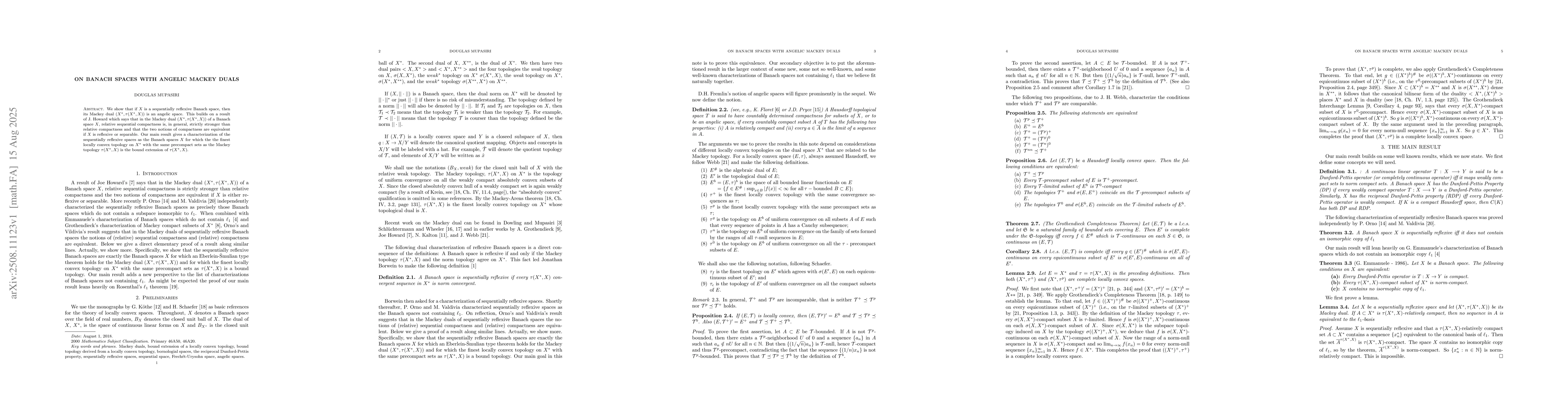 We show that if $X$ is a sequentially reflexive Banach space, then its Mackey dual $(X^{*},\tau (X^{*}, X))$ is an angelic space. This builds on a result of J. Howard which says that in the Mackey dual $(X^{*}, \tau (X^{*}, X))$ of a Banach space $X$, relative sequential compactness is, in general, strictly stronger than relative compactness and that the two notions of compactness are equivalent if $X$ is reflexive or separable. Our main result gives a characterization of the sequentially reflexive spaces as the Banach spaces $X$ for which the the finest locally convex topology on $X^{*}$ with the same precompact sets as the Mackey topology $\tau (X^{*}, X)$ is the bound extension of $\tau (X^{*}, X)$.
