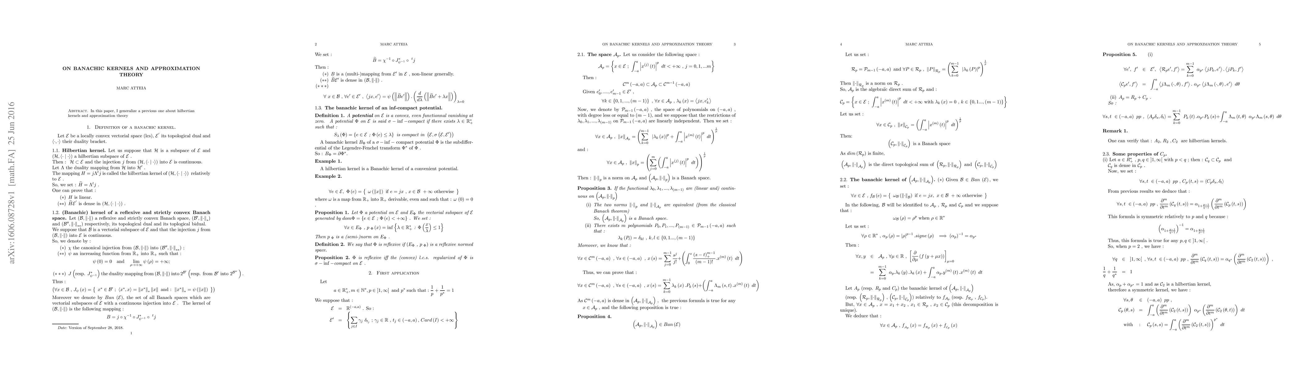 In this paper, I generalize a previous one about hilbertian kernels and approximation theory