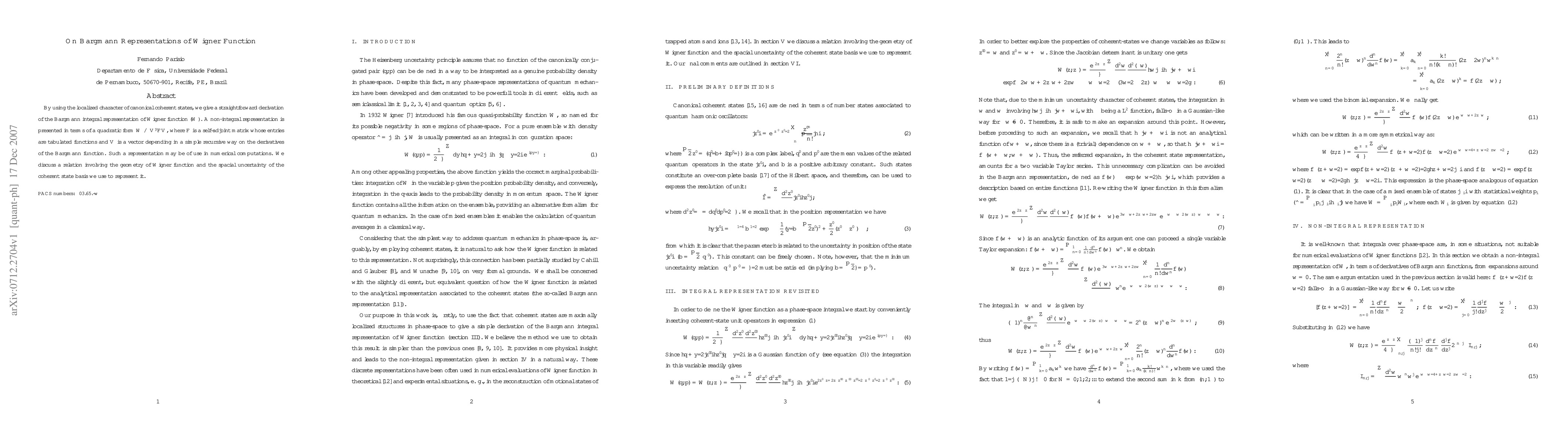 This paper derives the Bargmann integral representation of the Wigner function using canonical coherent states, and presents a non-integral quadratic form representation that may facilitate numerical computations. It also explores the connection between the geometry of the Wigner function and the spatial uncertainty of the coherent state basis.