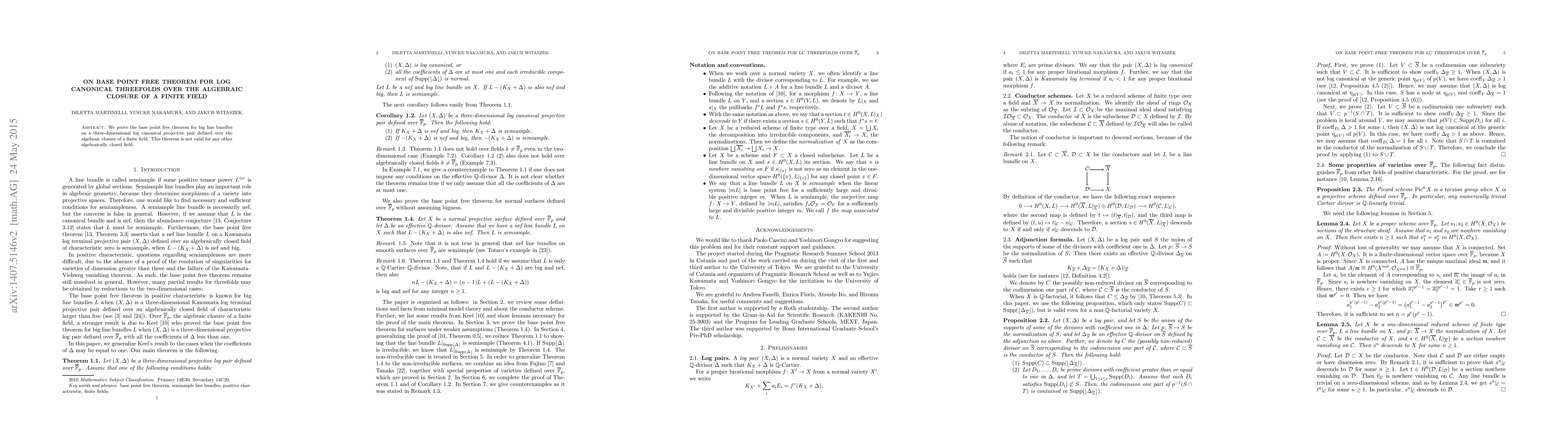 Researchers prove the base point free theorem for big line bundles on 3D log canonical projective pairs over finite fields, a breakthrough in algebraic geometry.