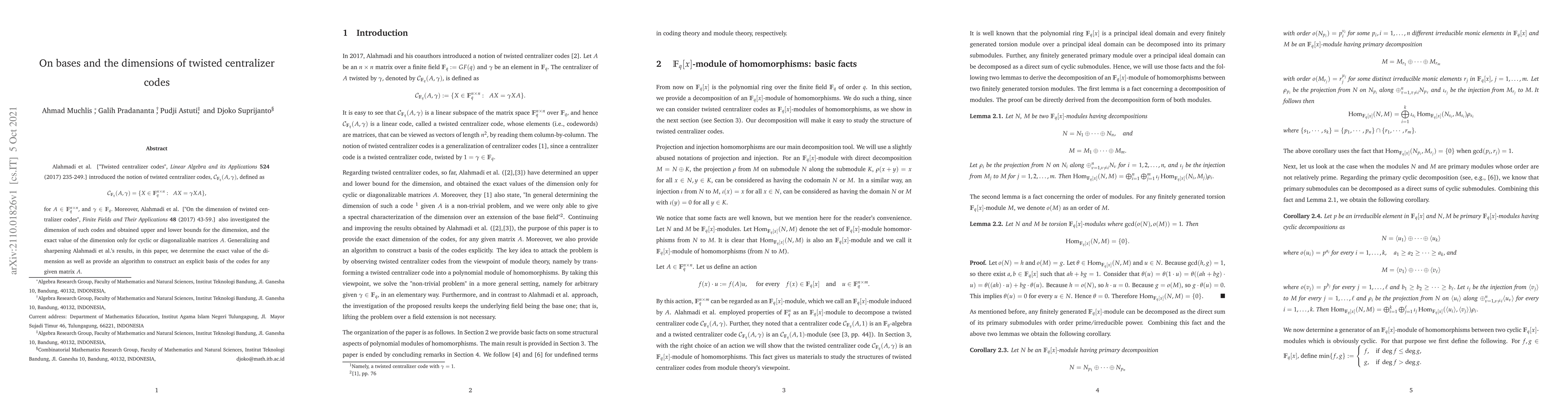 Researchers determined the exact dimension of twisted centralizer codes for any given matrix A, providing an algorithm to construct a basis of the codes.