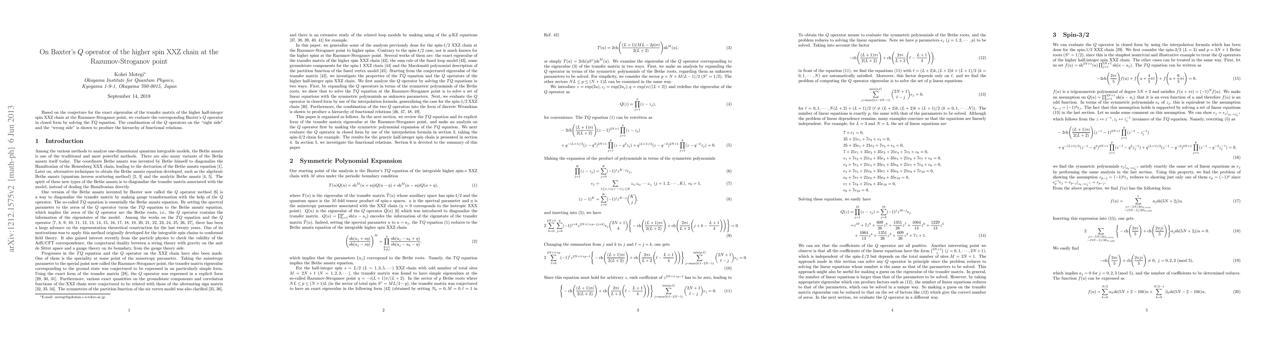Based on the conjecture for the exact eigenvalue of the transfer matrix of the higher half-integer spin XXZ chain at the Razumov-Stroganov point, we evaluate the corresponding Baxter's Q operator in closed form by solving the TQ equation. The combination of the Q operators on the "right side" and the "wrong side" is shown to produce the hierarchy of functional relations.