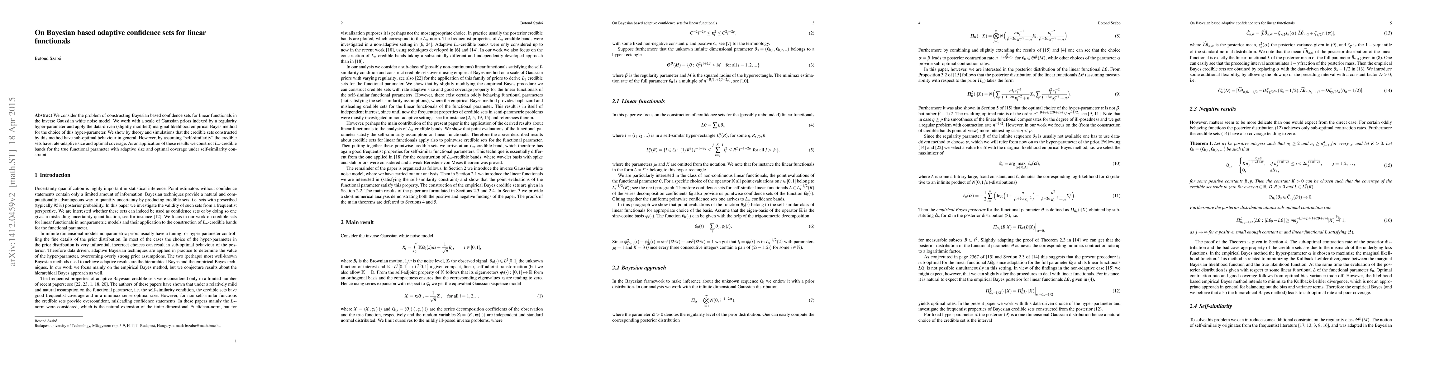 We consider the problem of constructing Bayesian based confidence sets for linear functionals in the inverse Gaussian white noise model. We work with a scale of Gaussian priors indexed by a regularity hyper-parameter and apply the data-driven (slightly modified) marginal likelihood empirical Bayes method for the choice of this hyper-parameter. We show by theory and simulations that the credible sets constructed by this method have sub-optimal behaviour in general. However, by assuming "self-similarity" the credible sets have rate-adaptive size and optimal coverage. As an application of these results we construct $L_{\infty}$-credible bands for the true functional parameter with adaptive size and optimal coverage under self-similarity constraint.