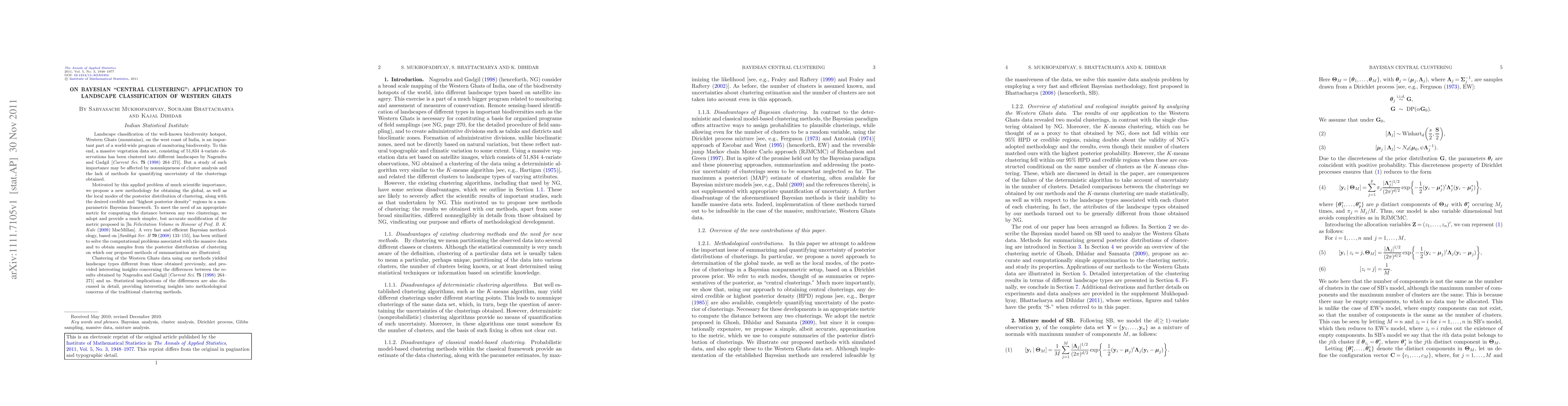 This paper proposes a Bayesian methodology for landscape classification of the Western Ghats, a biodiversity hotspot in India, using a massive dataset of vegetation observations. The new approach aims to address the nonuniqueness of cluster analysis and quantify uncertainty, providing global and local modes of the posterior distribution and credible regions in a nonparametric Bayesian framework.