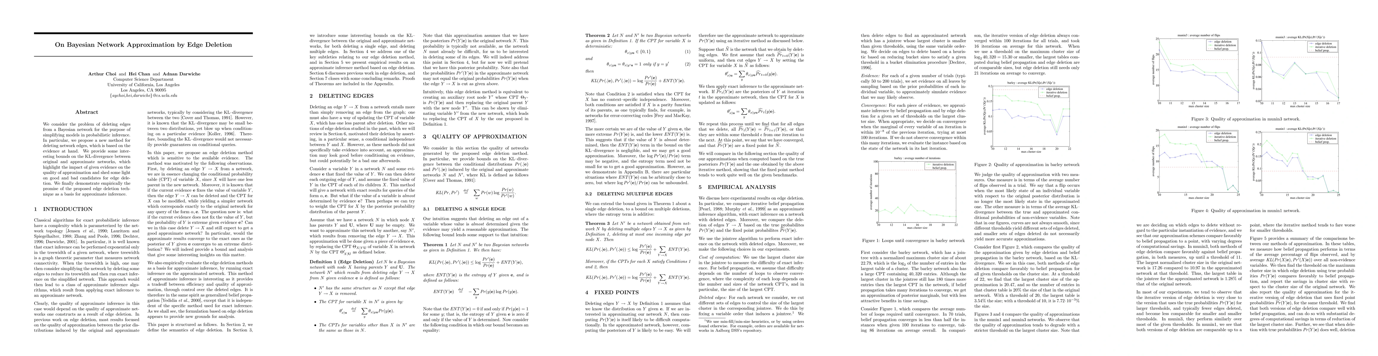 Researchers propose a new method to simplify Bayesian networks for probabilistic inference by deleting edges based on available evidence, providing bounds on the difference in KL-divergence between original and approximate networks.