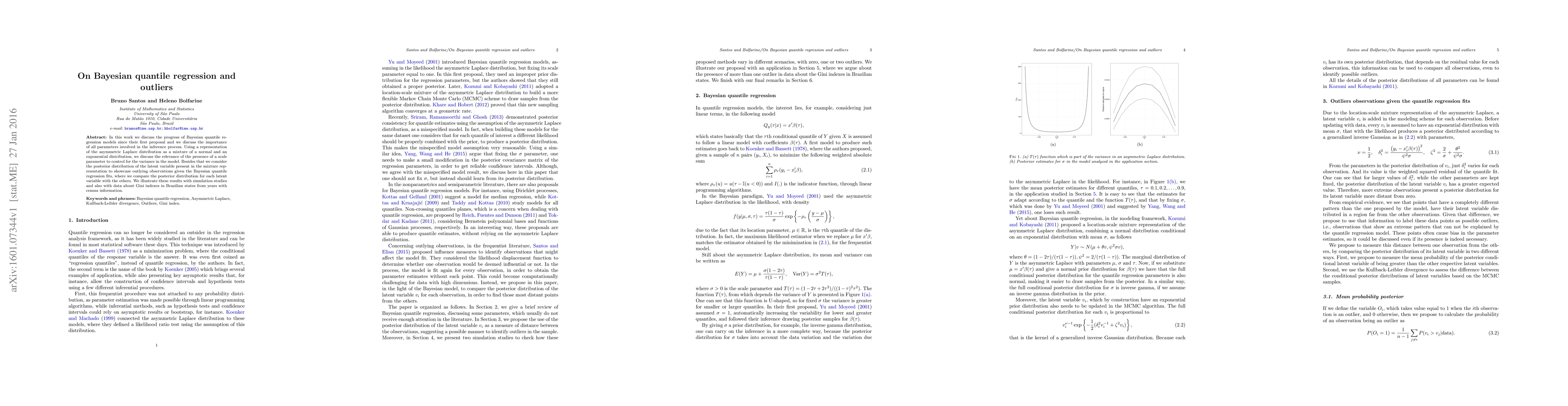 In this work we discuss the progress of Bayesian quantile regression models since their first proposal and we discuss the importance of all parameters involved in the inference process. Using a representation of the asymmetric Laplace distribution as a mixture of a normal and an exponential distribution, we discuss the relevance of the presence of a scale parameter to control for the variance in the model. Besides that we consider the posterior distribution of the latent variable present in the mixture representation to showcase outlying observations given the Bayesian quantile regression fits, where we compare the posterior distribution for each latent variable with the others. We illustrate these results with simulation studies and also with data about Gini indexes in Brazilian states from years with census information.