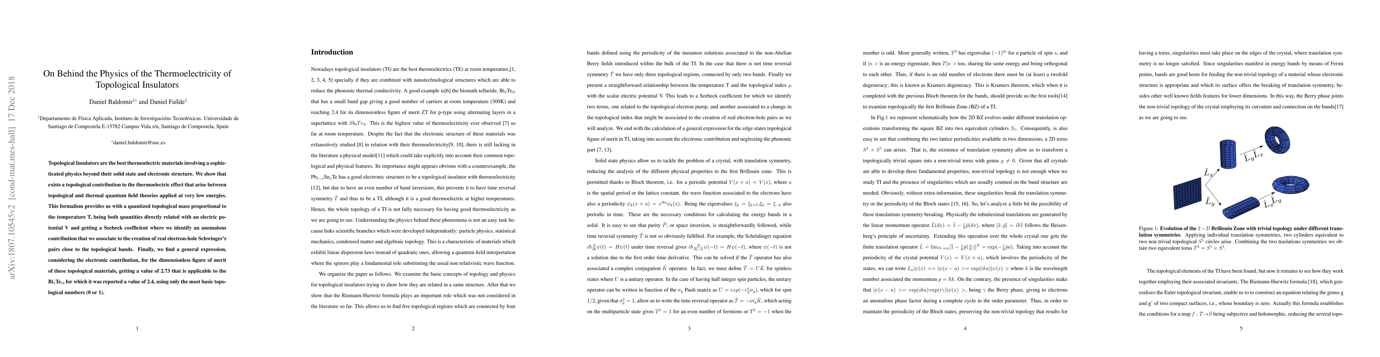 Topological Insulators are the best thermoelectric materials involving a sophisticated physics beyond their solid state and electronic structure. We show that exists a topological contribution to the thermoelectric effect that arise between topological and thermal quantum field theories applied at very low energies. This formalism provides us with a quantized topological mass proportional to the temperature T, being both quantities directly related with an electric potential V and getting a Seebeck coefficient where we identify an anomalous contribution that we associate to the creation of real electron-hole Schwinger's pairs close to the topological bands. Finally, we find a general expression, considering the electronic contribution, for the dimensionless figure of merit of these topological materials, getting a value of 2.73 that is applicable to the Bi$_2$Te$_3$, for which it was reported a value of 2.4, using only the most basic topological numbers (0 or 1).