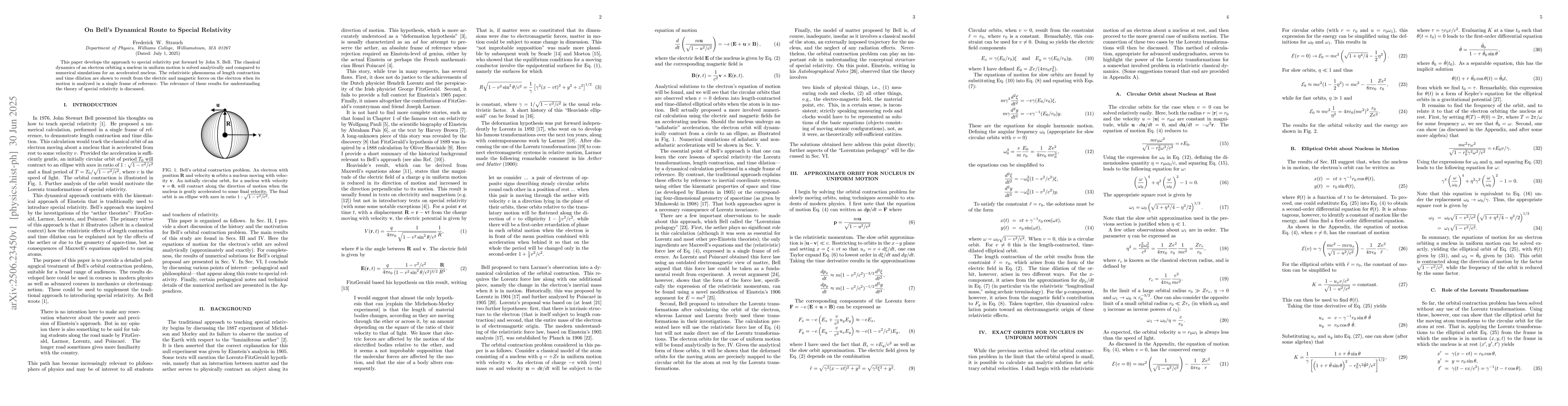 This paper develops the approach to special relativity put forward by John S. Bell. The classical dynamics of an electron orbiting a nucleus in uniform motion is solved analytically and compared to numerical simulations for an accelerated nucleus. The relativistic phenomena of length contraction and time dilation are shown to result from the electric and magnetic forces on the electron when its motion is analyzed in a single frame of reference. The relevance of these results for understanding the theory of special relativity is discussed.