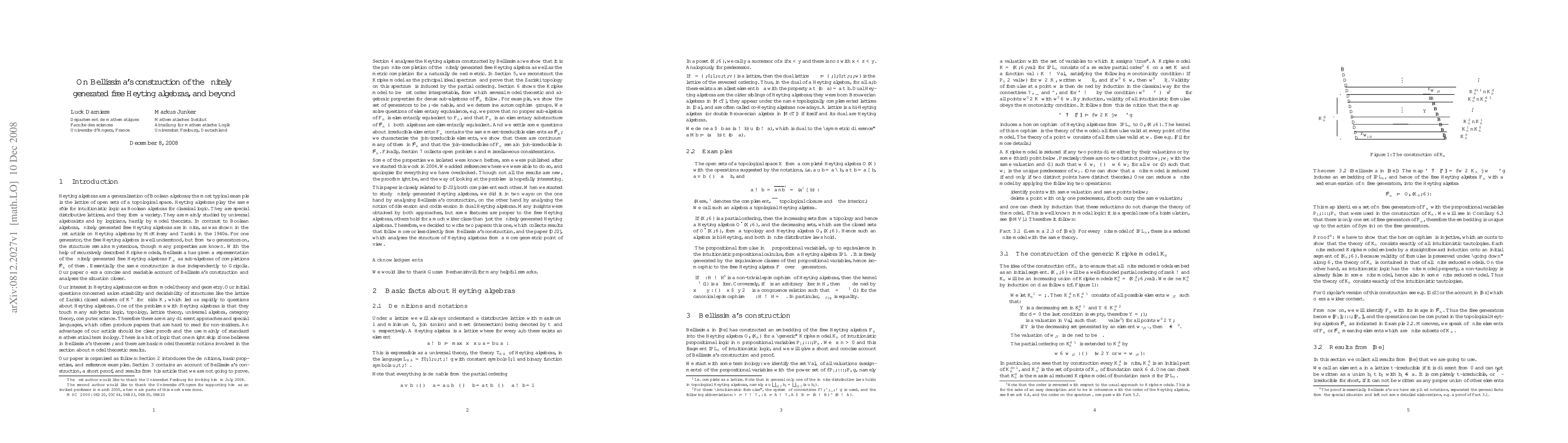 We study finitely generated free Heyting algebras from a topological and from a model theoretic point of view. We review Bellissima's representation of the finitely generated free Heyting algebra; we prove that it yields an embedding in the profinite completion, which is also the completion with respect to a naturally defined metric. We give an algebraic interpretation of the Kripke model used by Bellissima as the principal ideal sprectrum and show it to be first order interpretable in the Heyting algebra, from which several model theoretic and algebraic properties are derived. For example we prove that a free finitely generated Heyting algebra has only one set of free generators, which is definable in it. As a consequence its automorphism group is the permutation group over its generators.